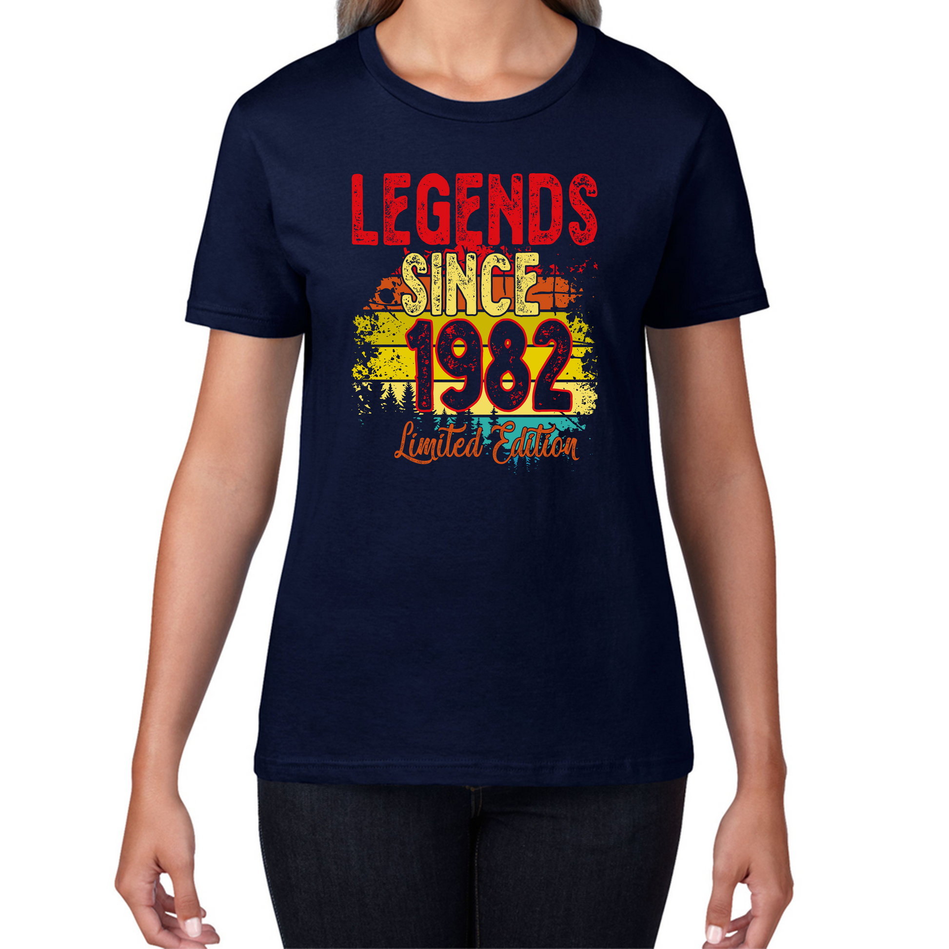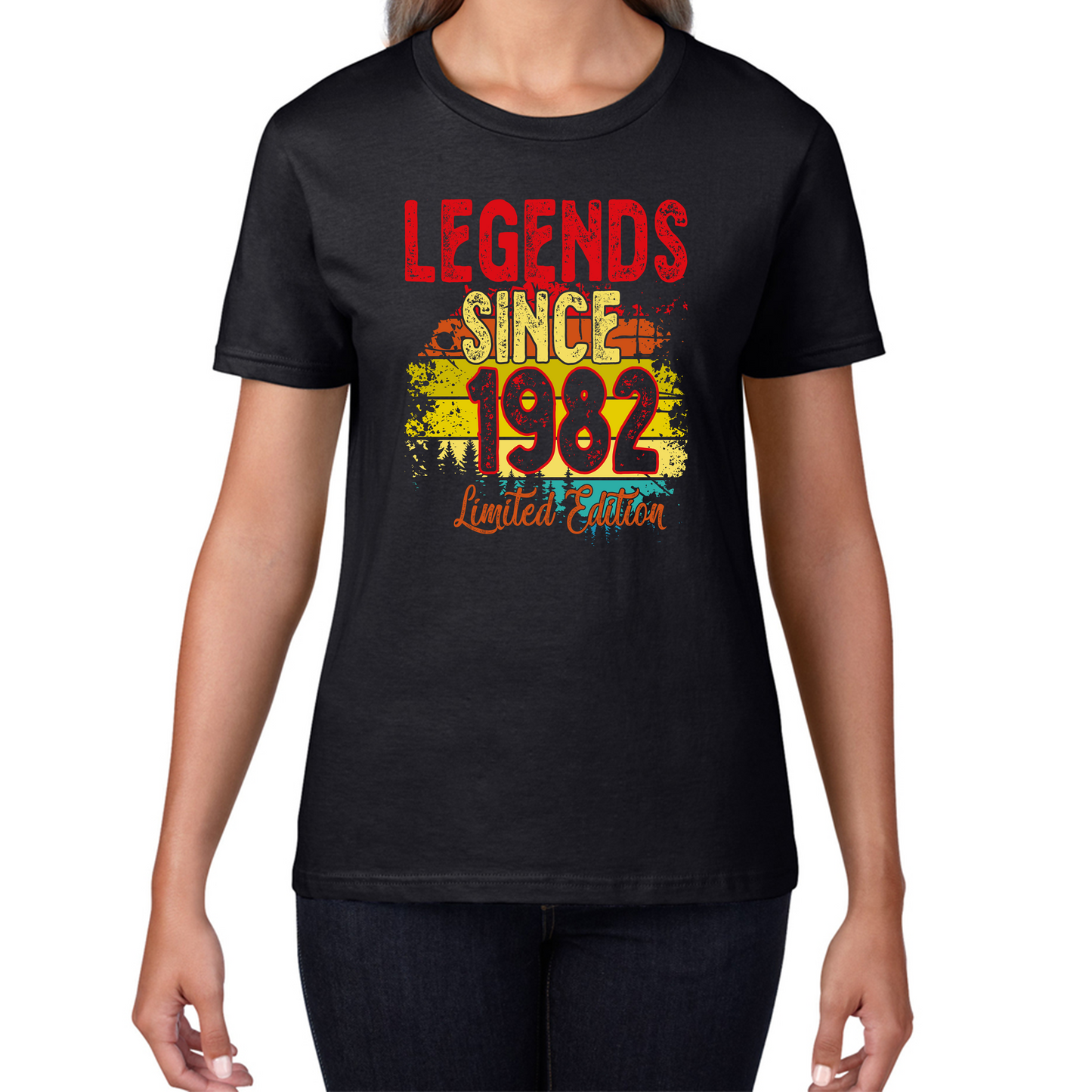 Celebrate a milestone year with our "Legends Since 1982" Limited Edition Ladies T-Shirt. This exclusive tee combines a flattering fit with a bold design, making it perfect for marking a special year or showcasing your legendary status with style.