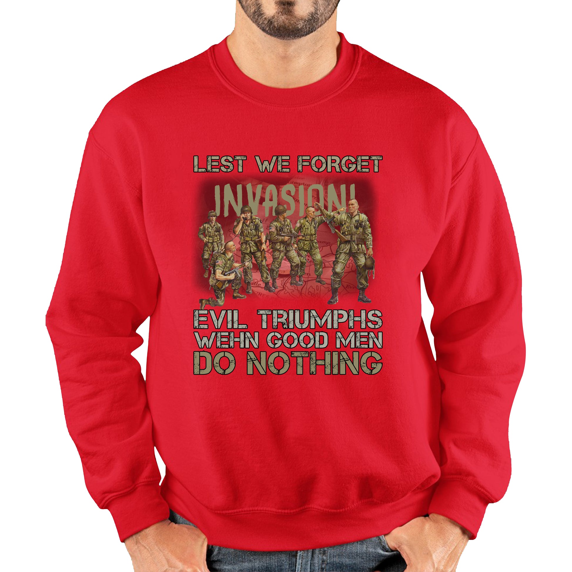 Lest We Forget Evil Triumphs When Good Men Do Nothing British Army Remembrance Day Veterans Day Unisex Sweatshirt