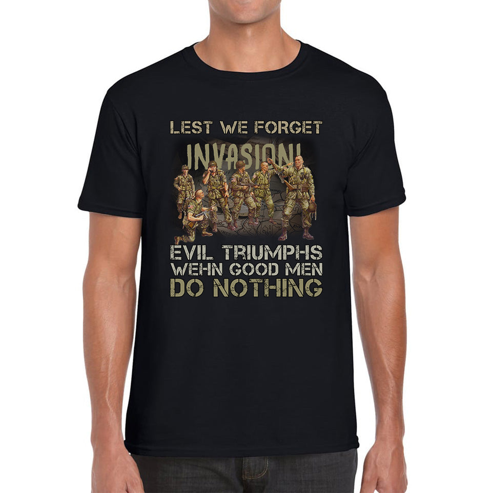 Lest We Forget Evil Triumphs When Good Men Do Nothing British Army Remembrance Day Veterans Day Mens Tee Top