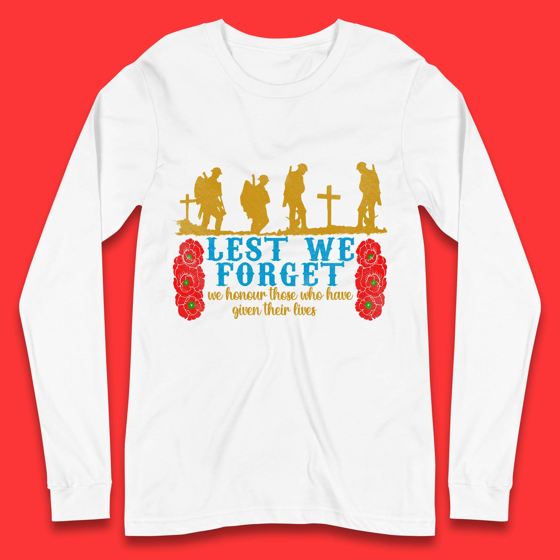 Lest We Forget We Honour Those Who Have Given Their Lives Remembrance Day Long Sleeve T Shirt