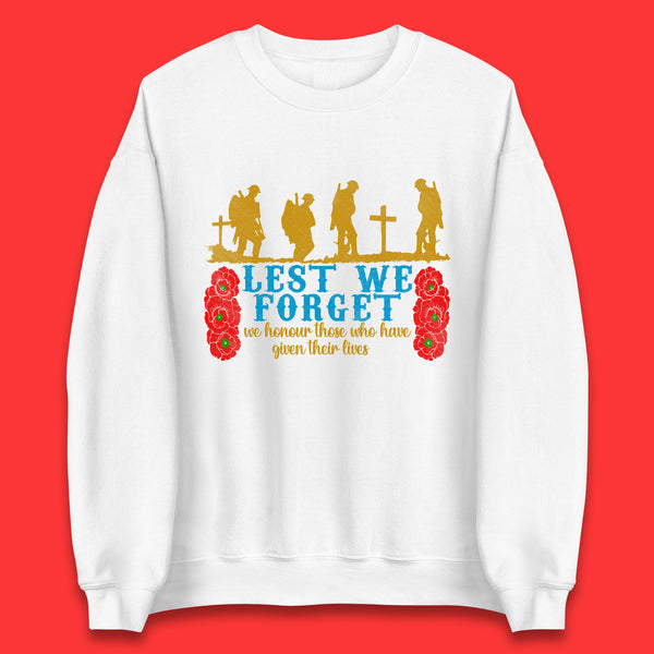 Lest We Forget We Honour Those Who Have Given Their Lives Remembrance Day Mens Tee Top