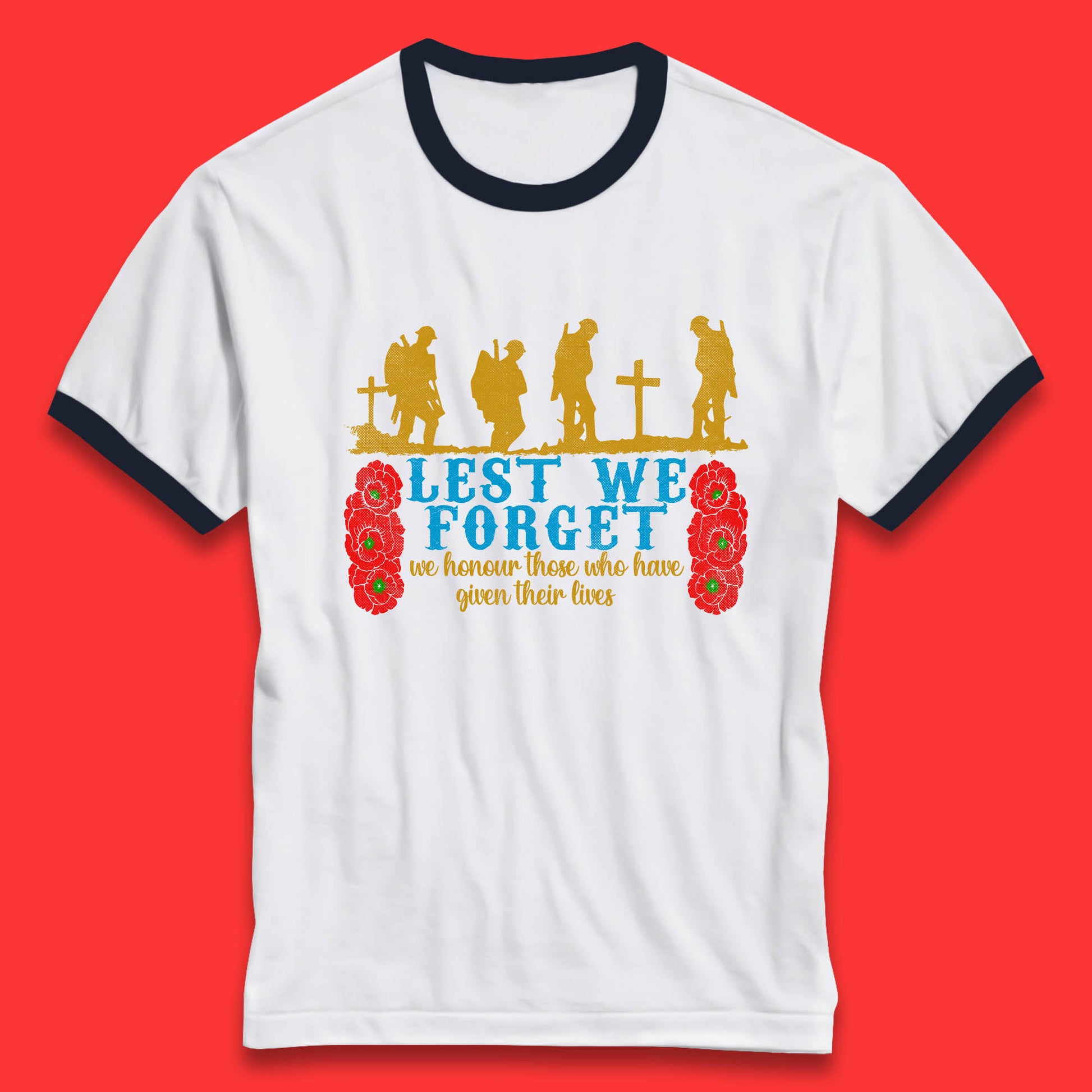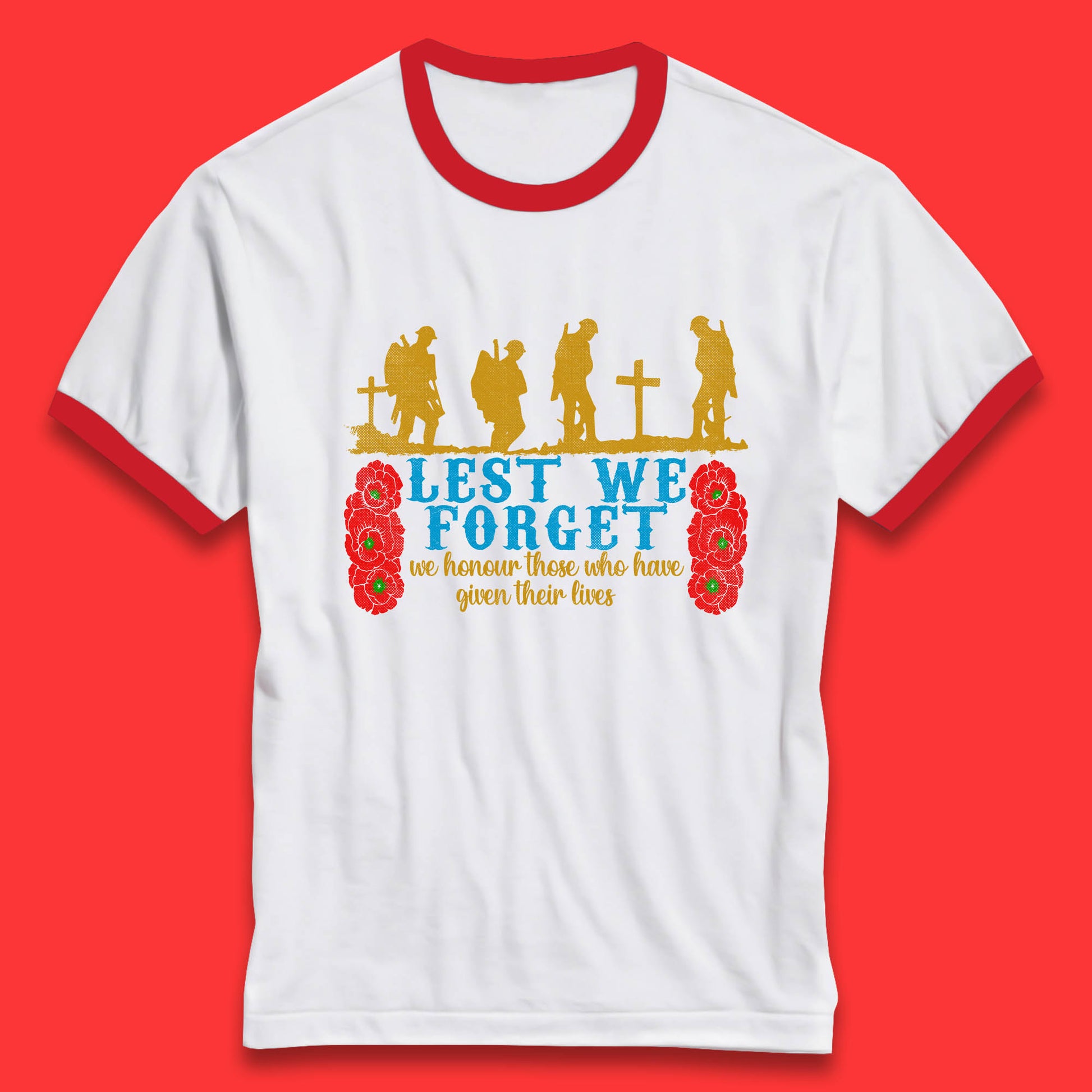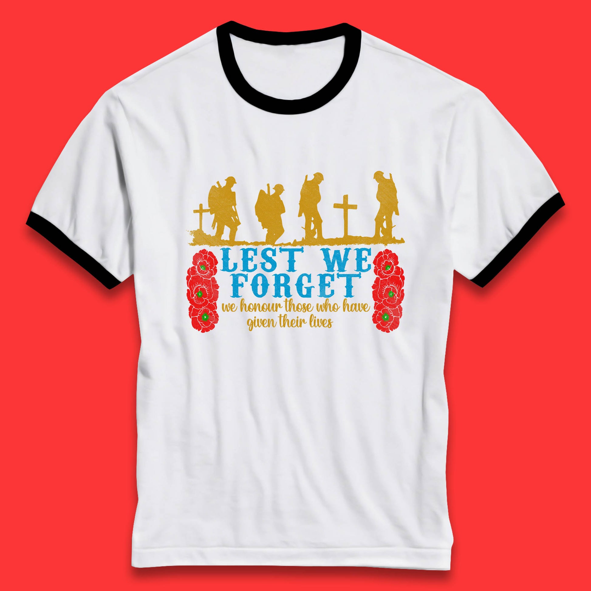 Lest We Forget We Honour Those Who Have Given Their Lives Remembrance Day Ringer T Shirt