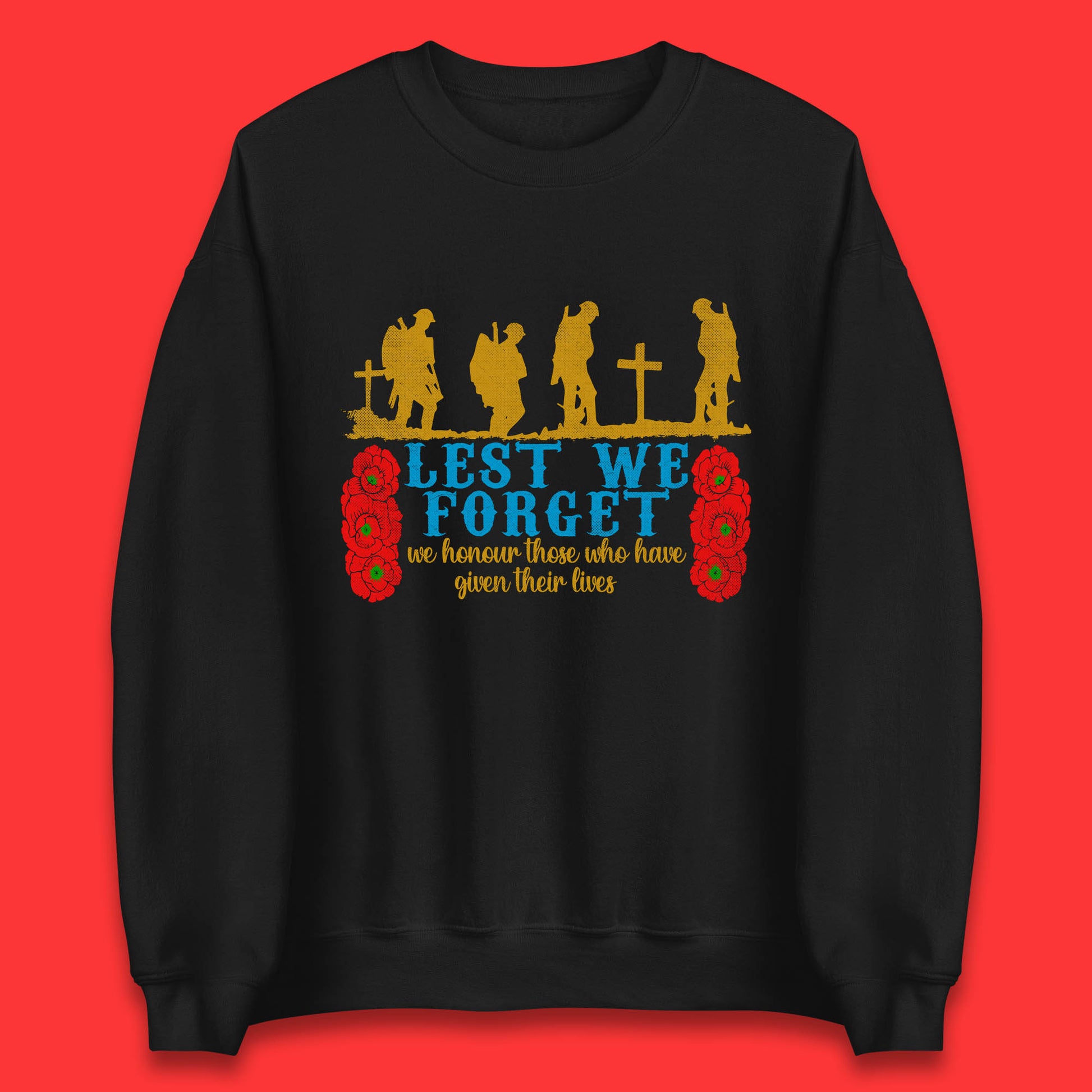 Lest We Forget We Honour Those Who Have Given Their Lives Remembrance Day Unisex Sweatshirt