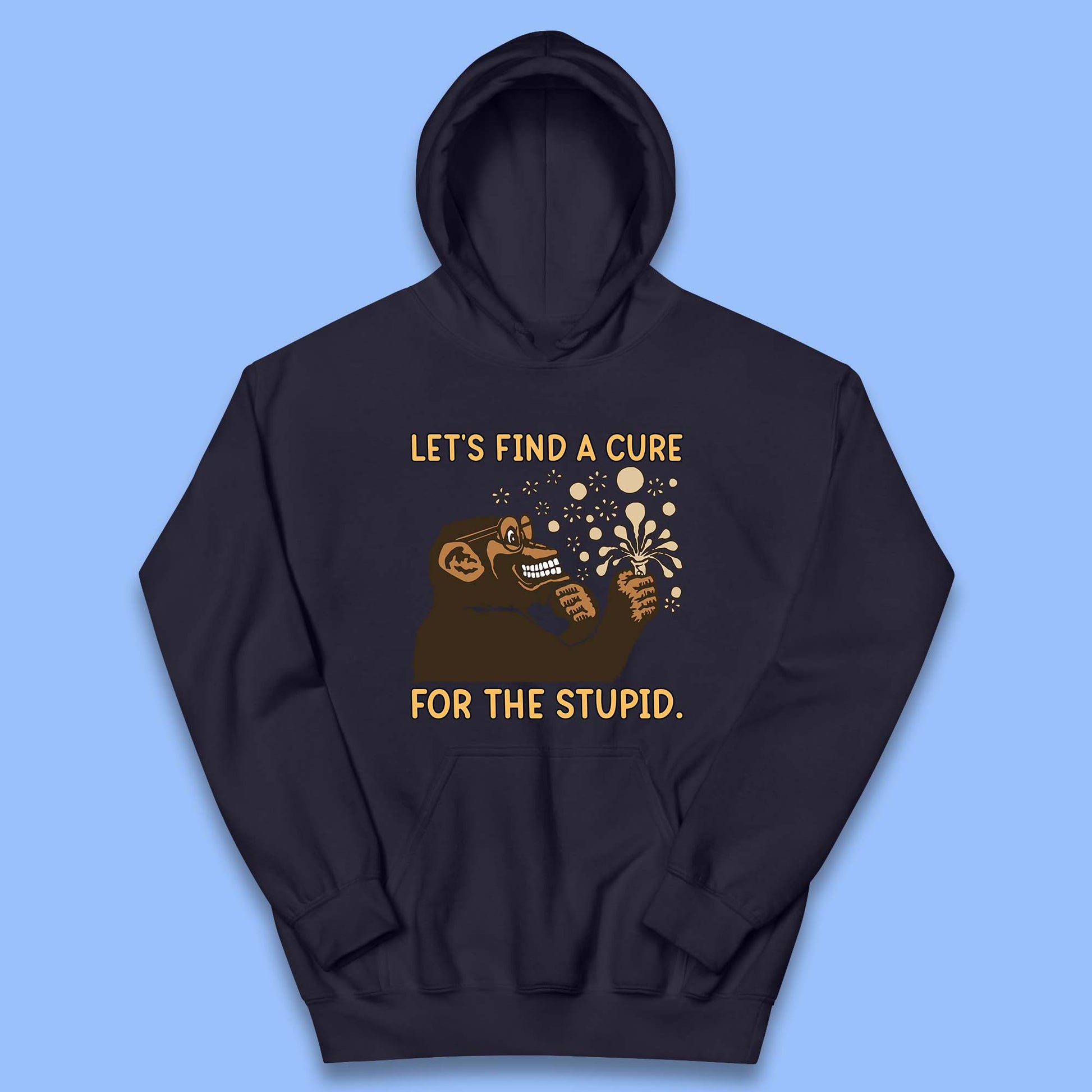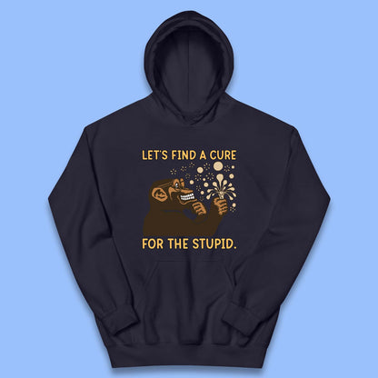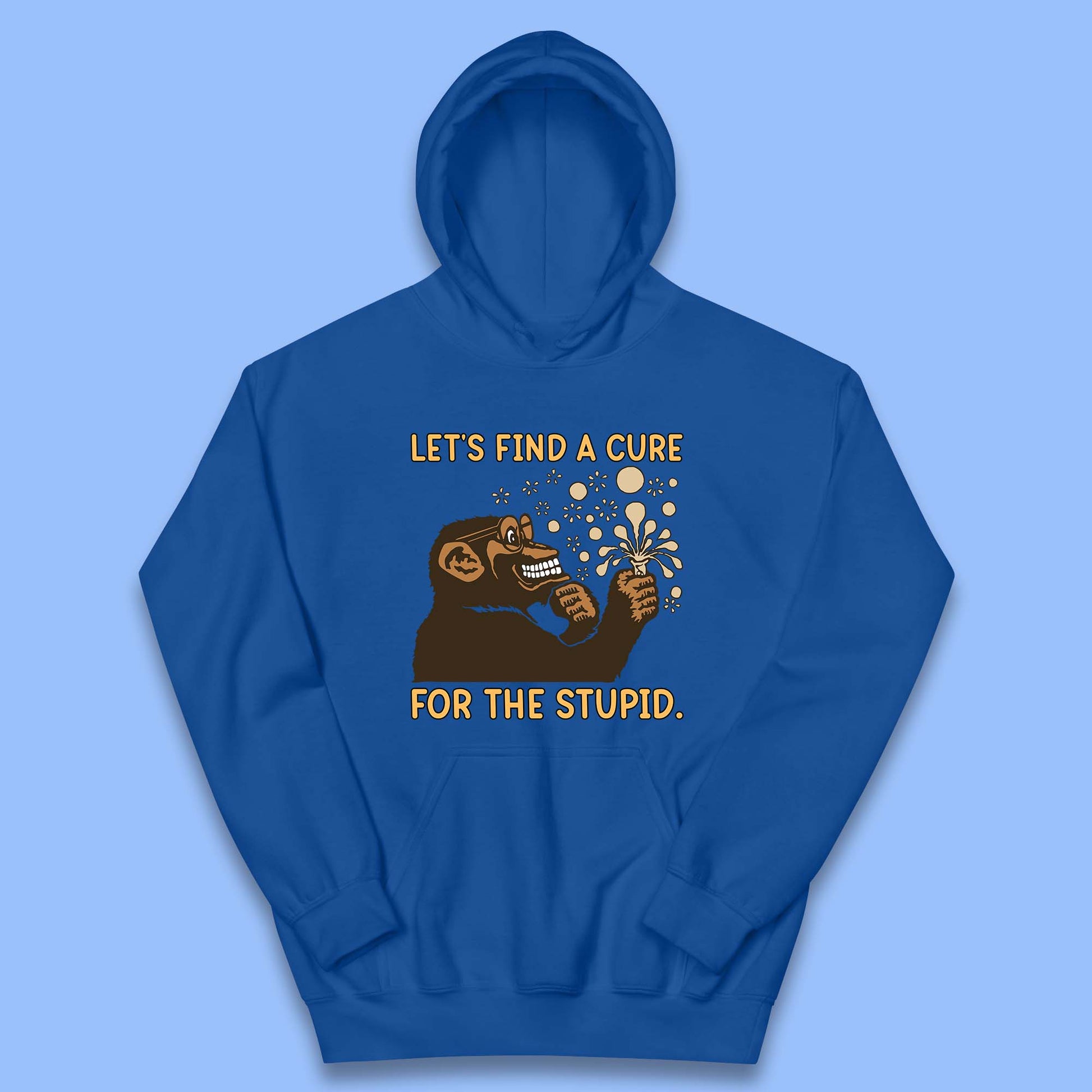 Let's Find A Cure For The Stupid Monkey Discovered Stupid People Funny Sarcastic Science Kids Hoodie