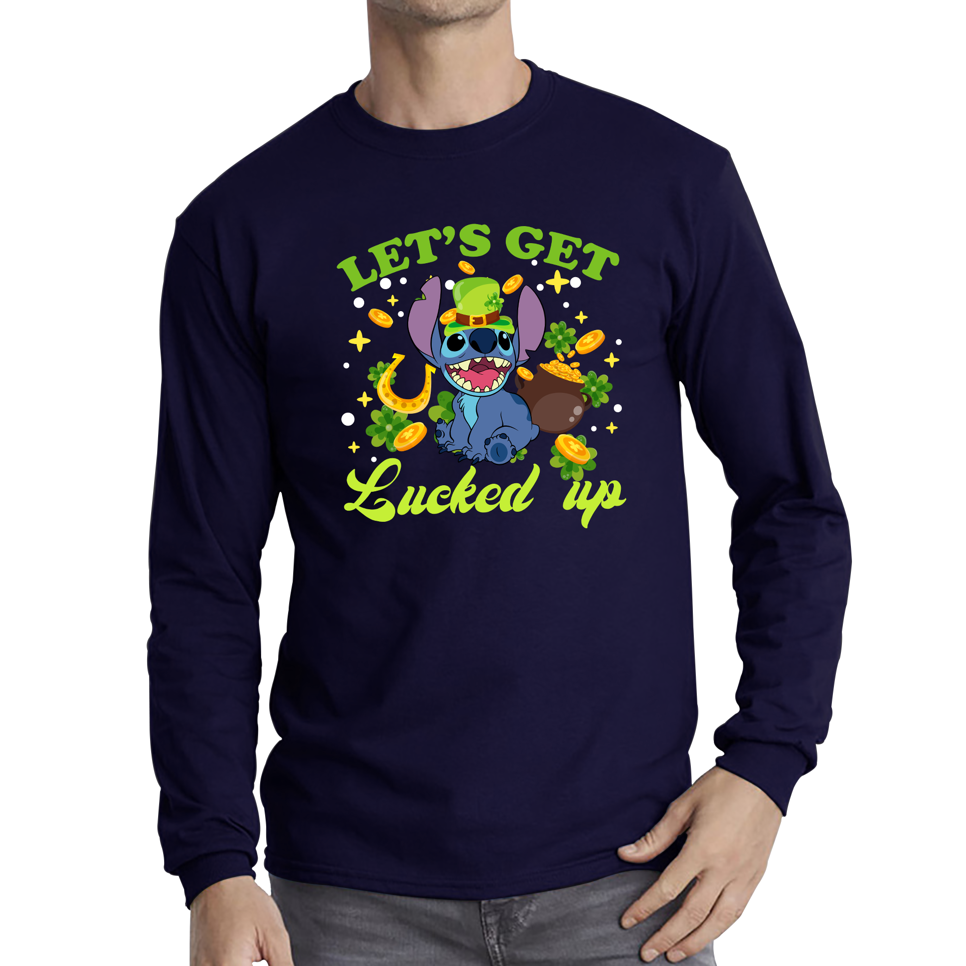 Let's Get Lucked Up Stitch Leprechaun Funny Cartoon St Patrick's Day Irish Festival Long Sleeve T Shirt