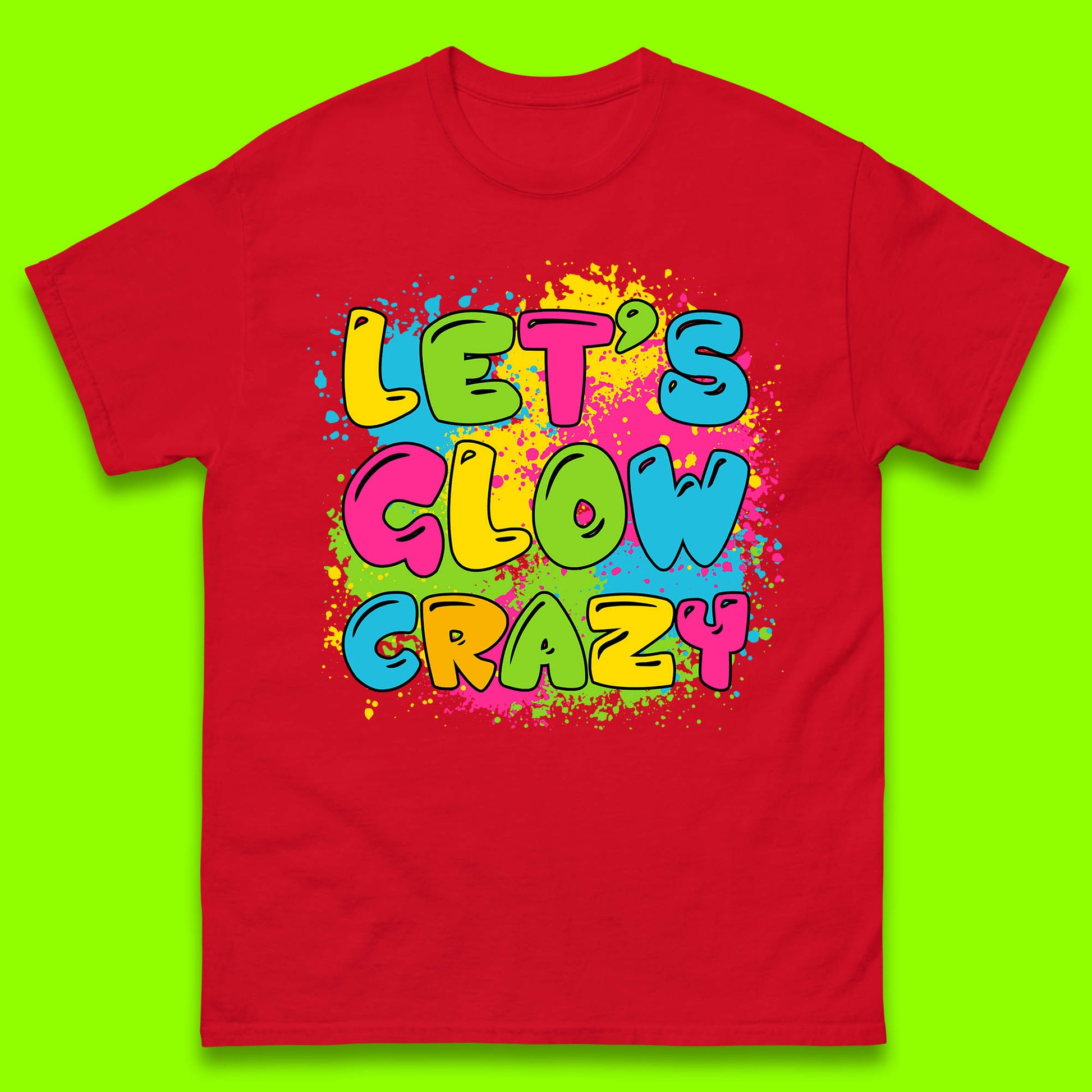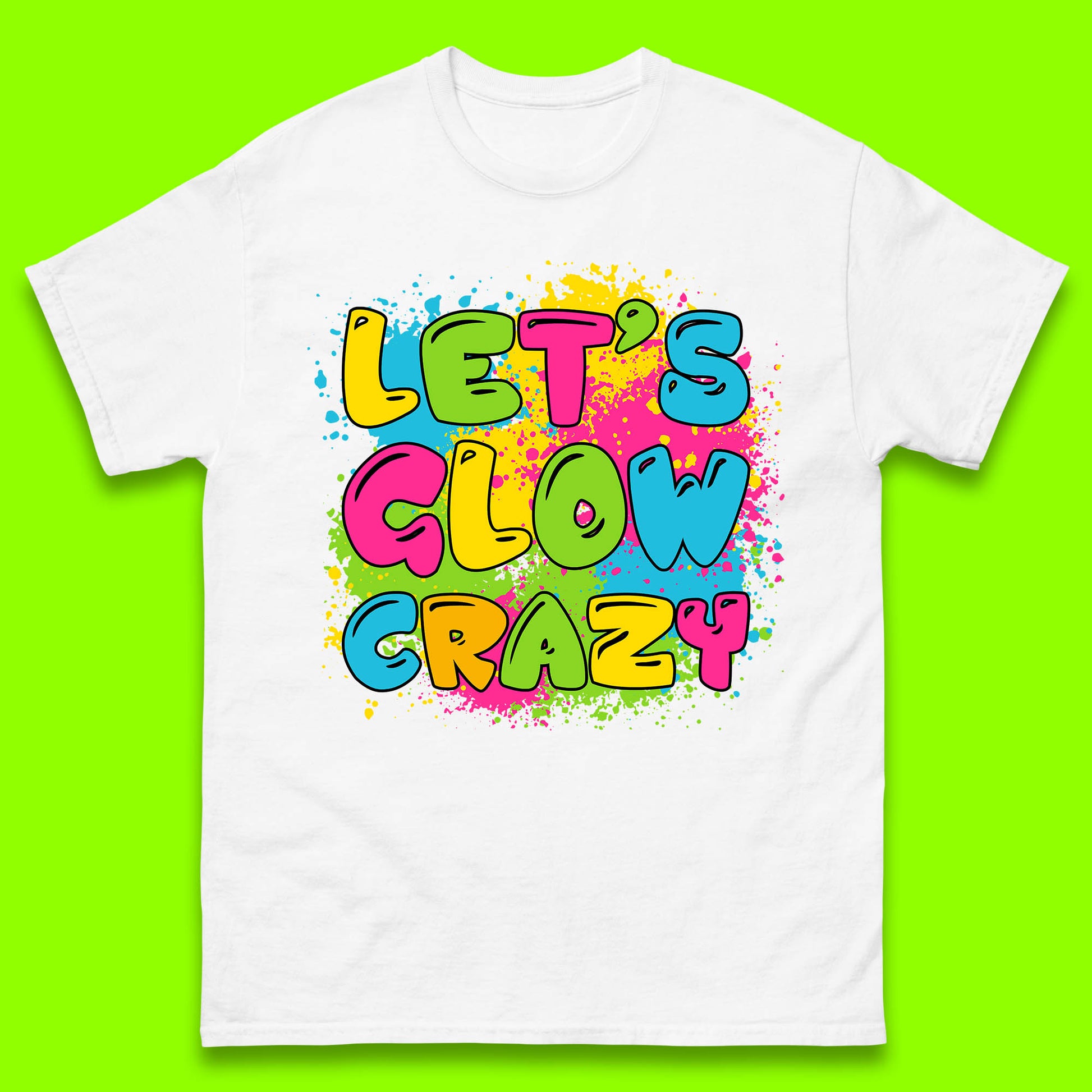 Let's Glow Crazy Paint Splatter Glow Birthday Retro Colorful Theme Party Mens Tee Top