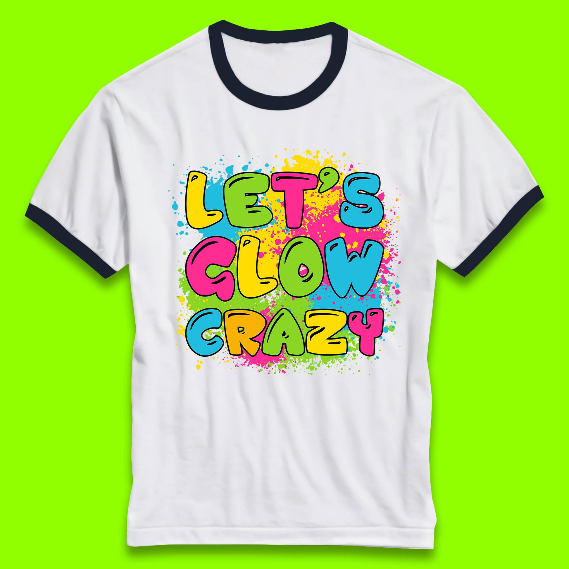 Let's Glow Crazy Paint Splatter Glow Birthday Retro Colorful Theme Party Ringer T Shirt