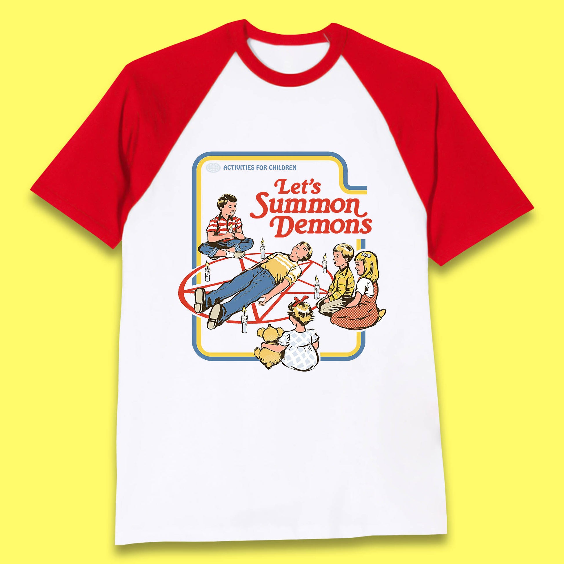 Let's Summon Demons Creepy Incantation Halloween Comic Funny Dark Humor Baseball T Shirt