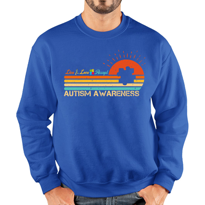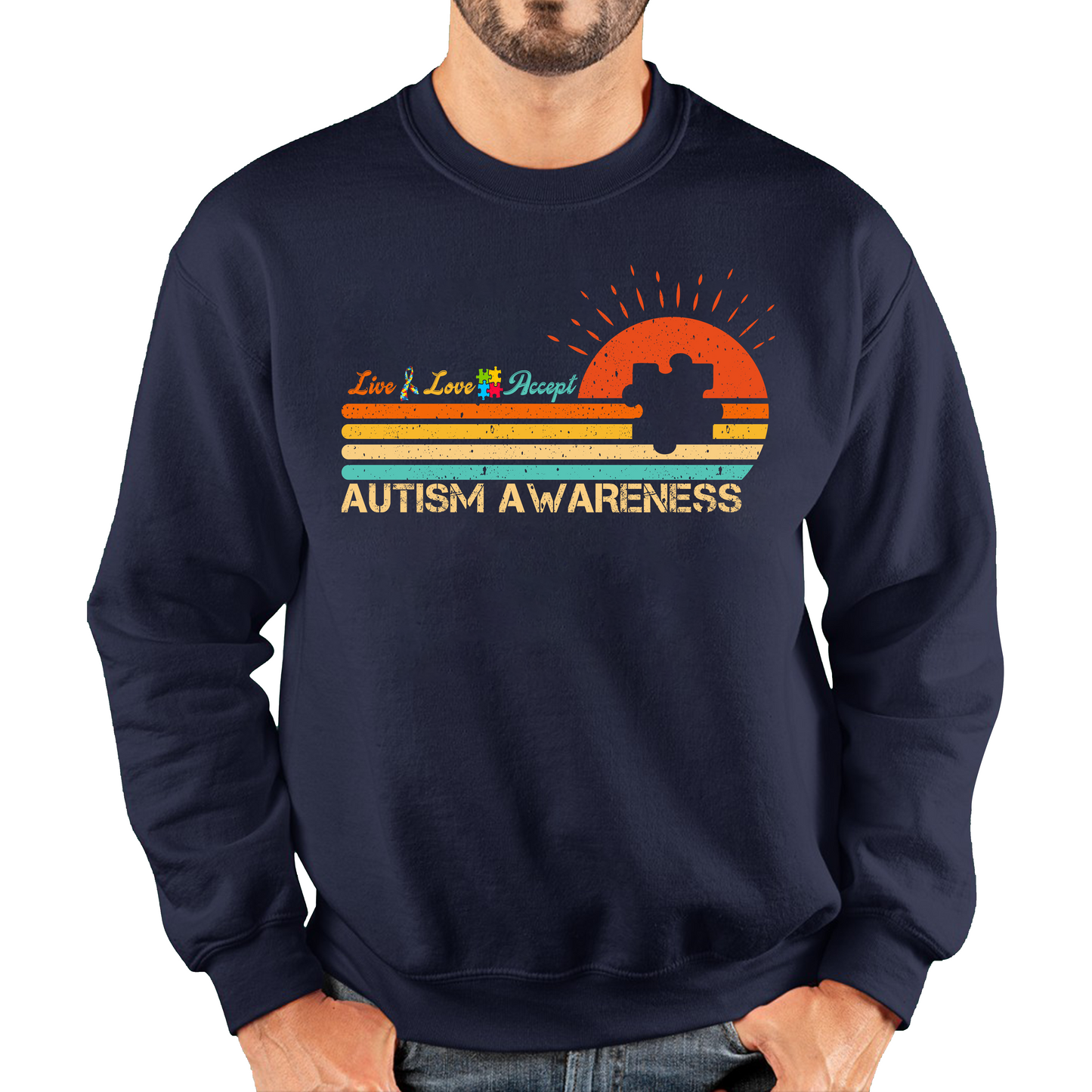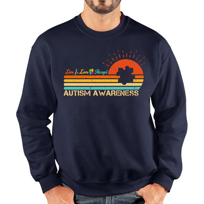 Live Love Accept Vintage Retro Autism Awareness Unisex Sweatshirt