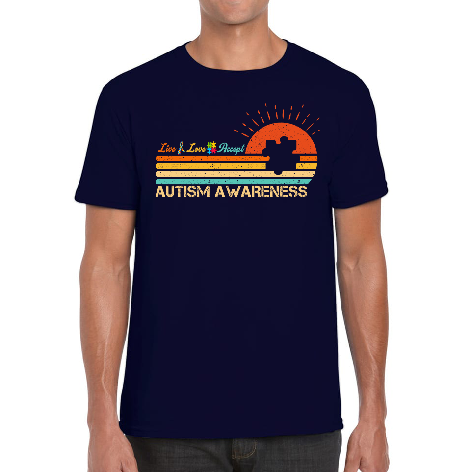 Live Love Accept Vintage Retro Autism Awareness Unisex T Shirt