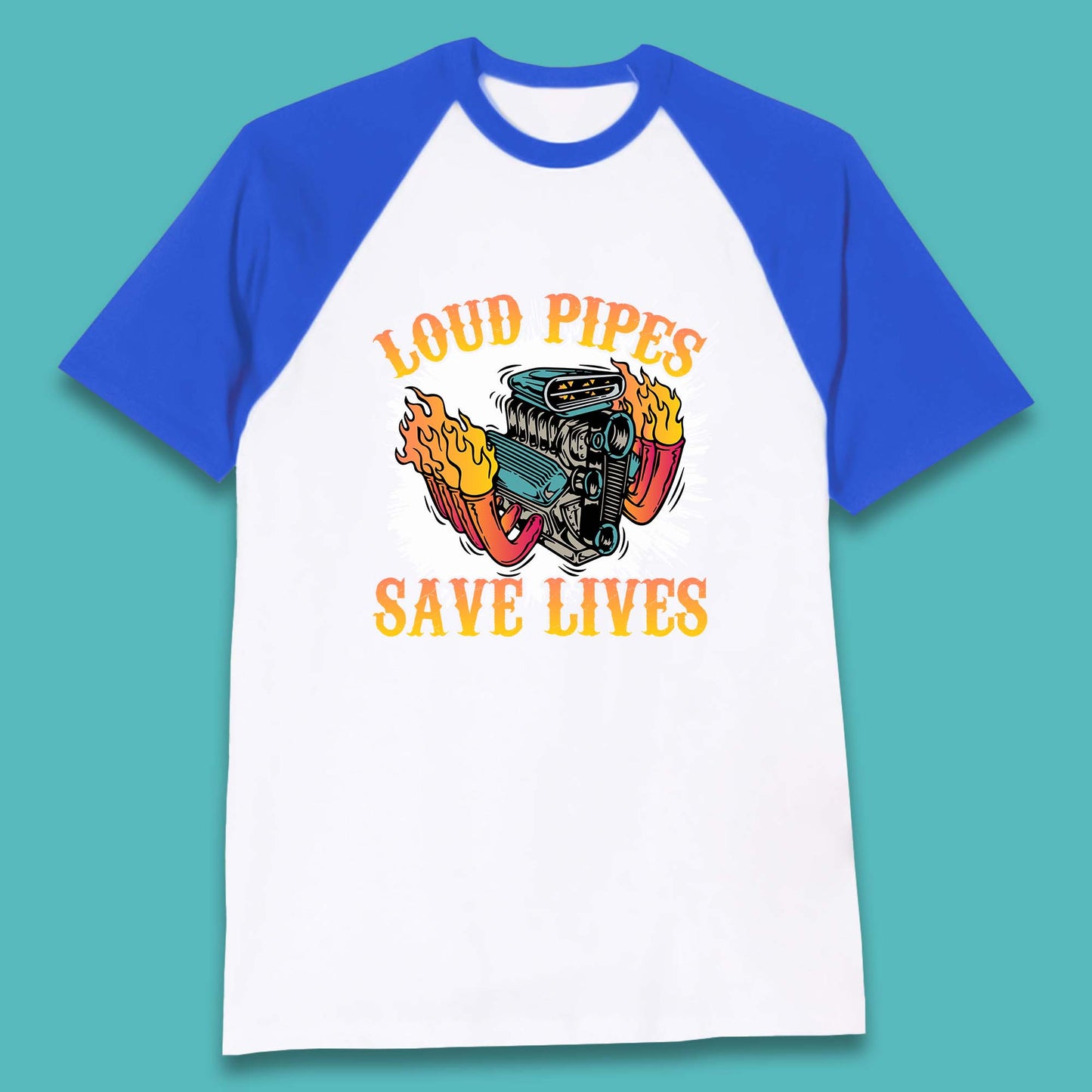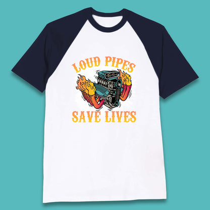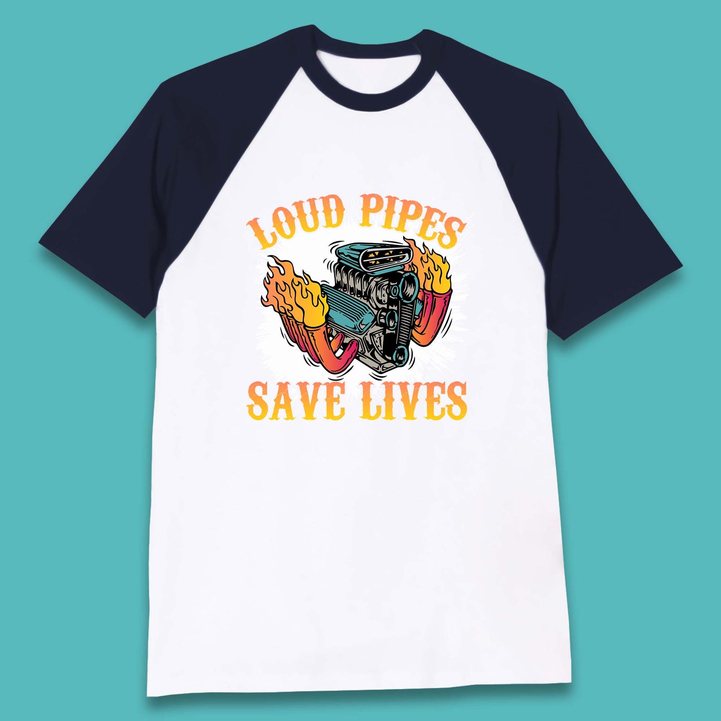 Loud Pipes Save Lives Hot Rod Motor Vehicle Flaming Engine Baseball T Shirt