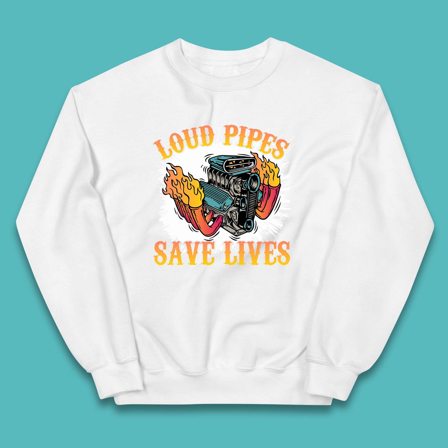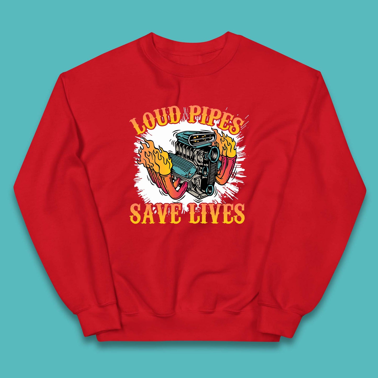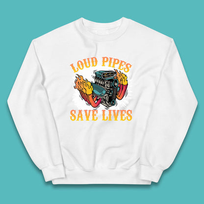 Loud Pipes Save Lives Hot Rod Motor Vehicle Flaming Engine Kids Jumper