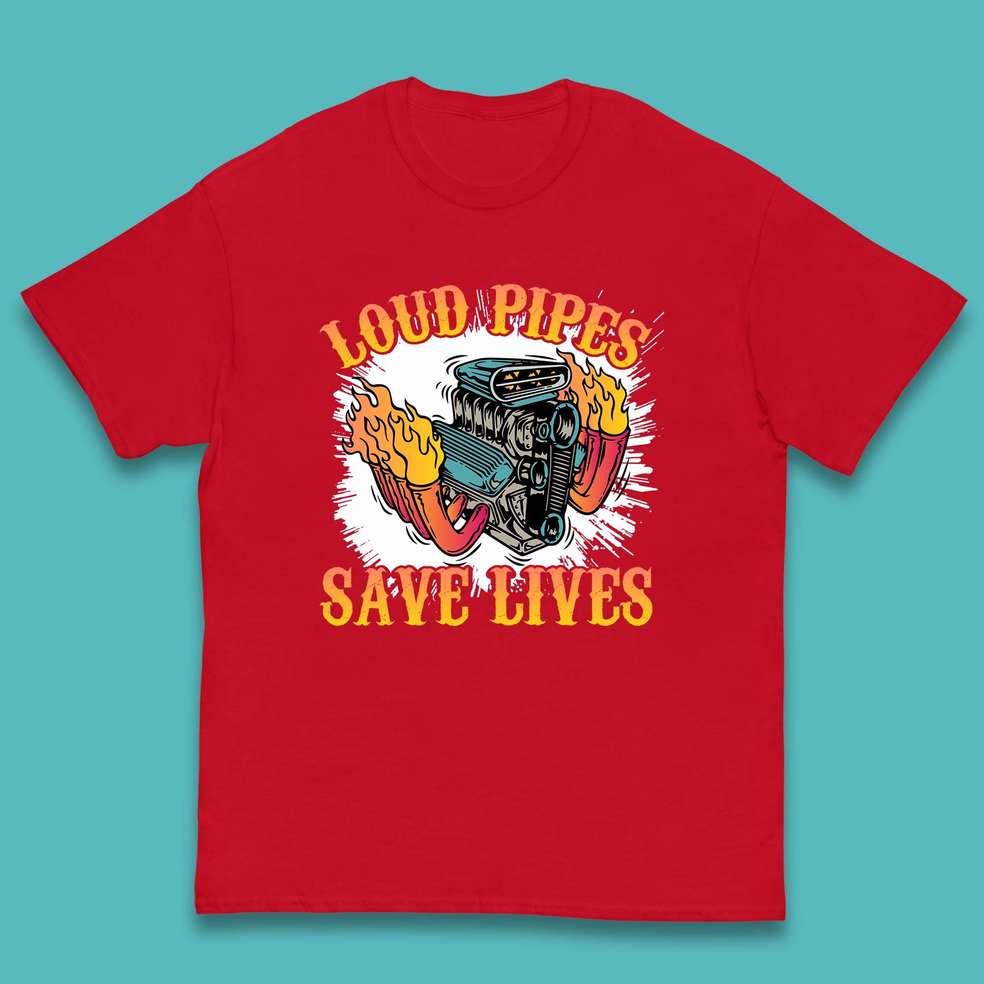 Loud Pipes Save Lives Hot Rod Motor Vehicle Flaming Engine Kids T Shirt