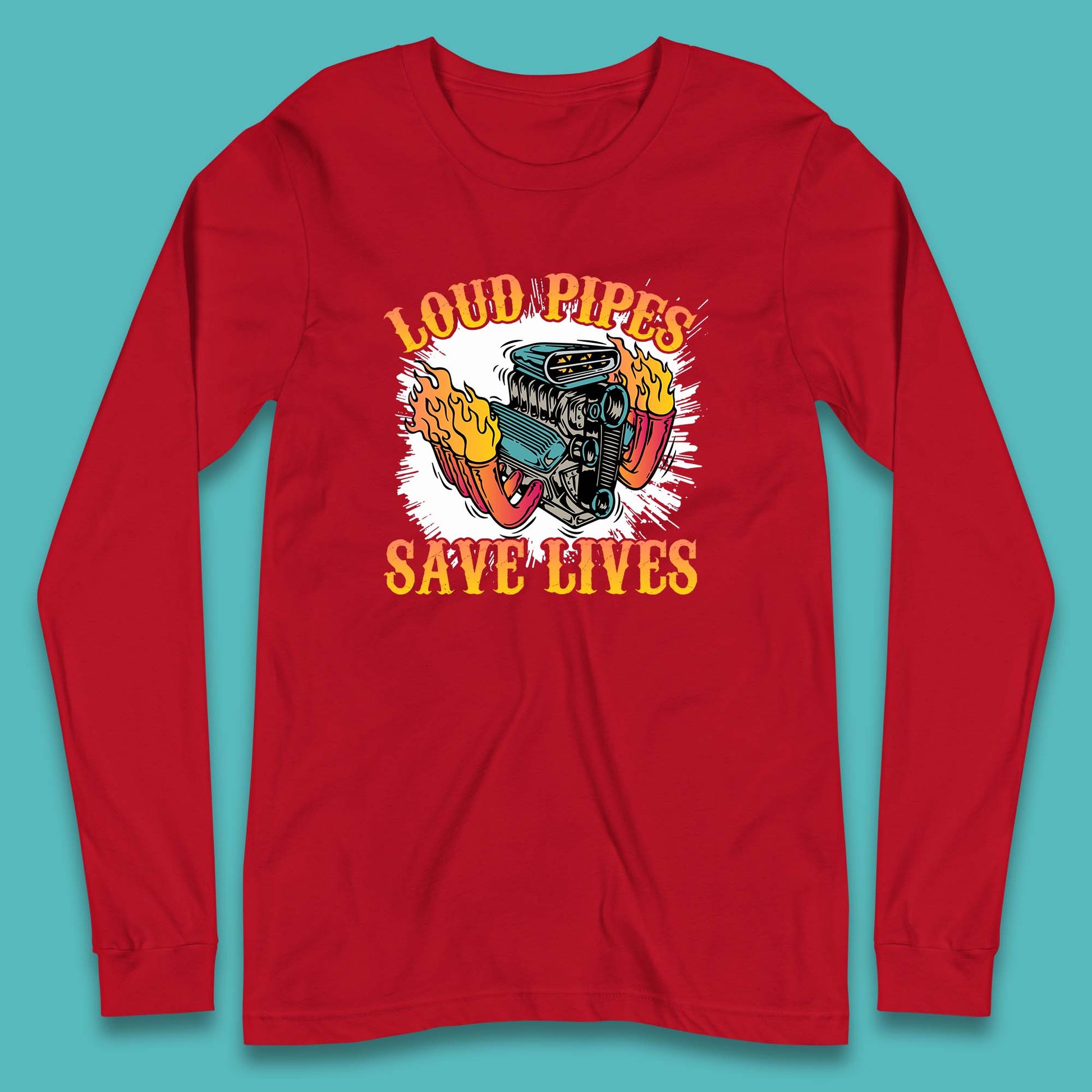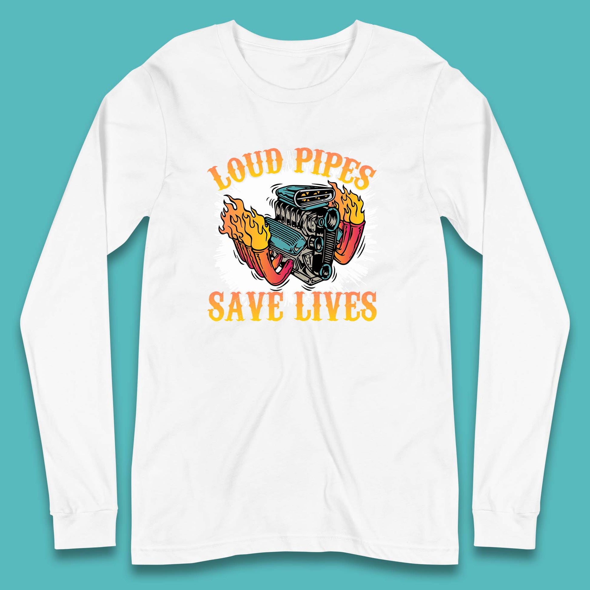 Loud Pipes Save Lives Hot Rod Motor Vehicle Flaming Engine Long Sleeve T Shirt