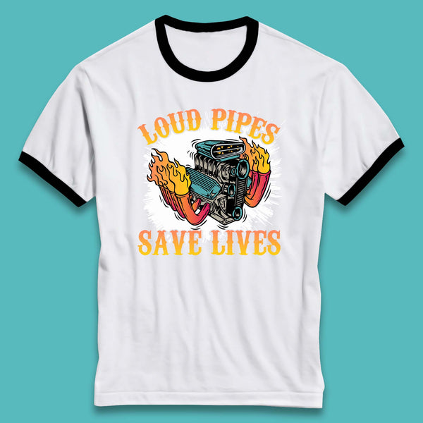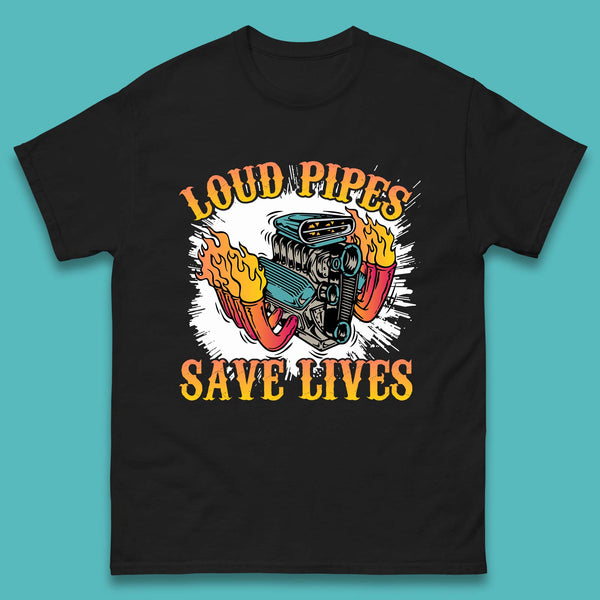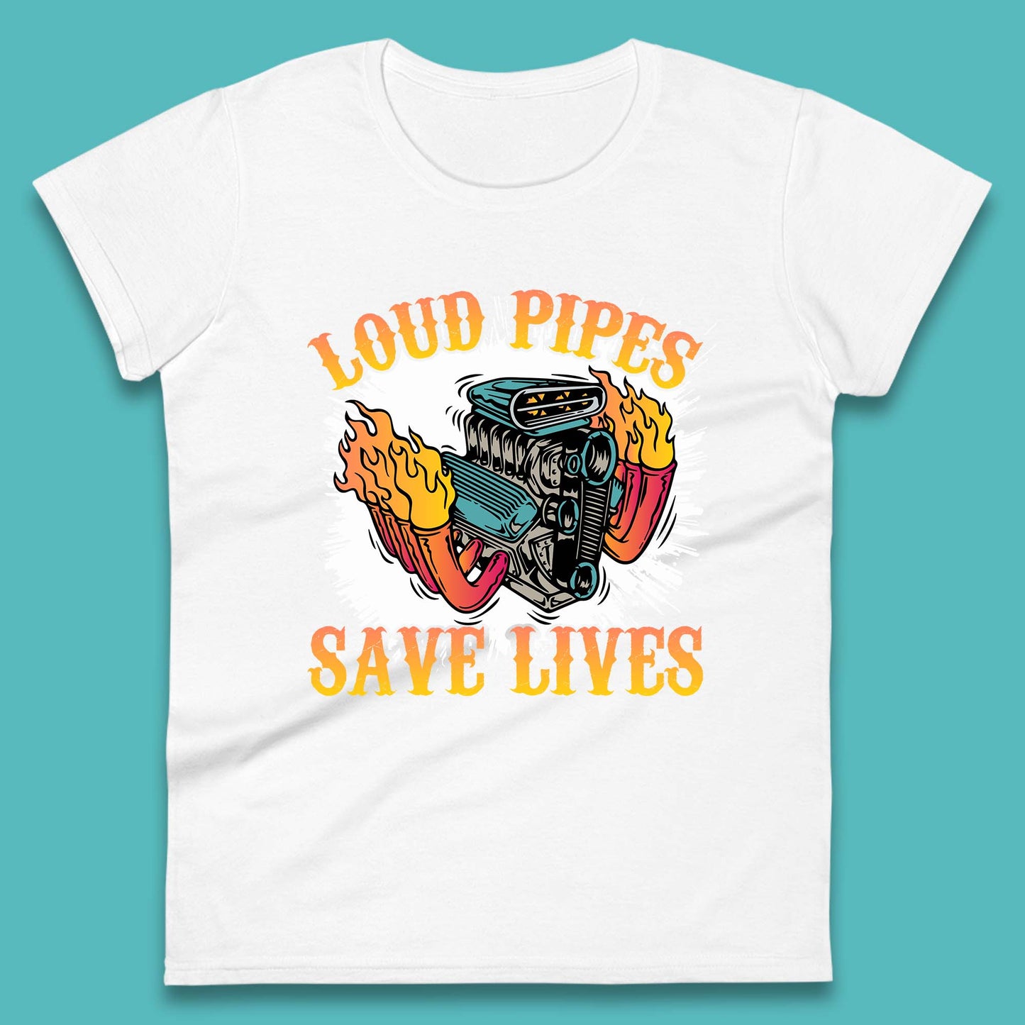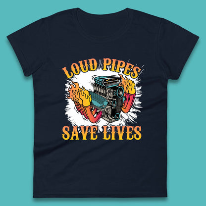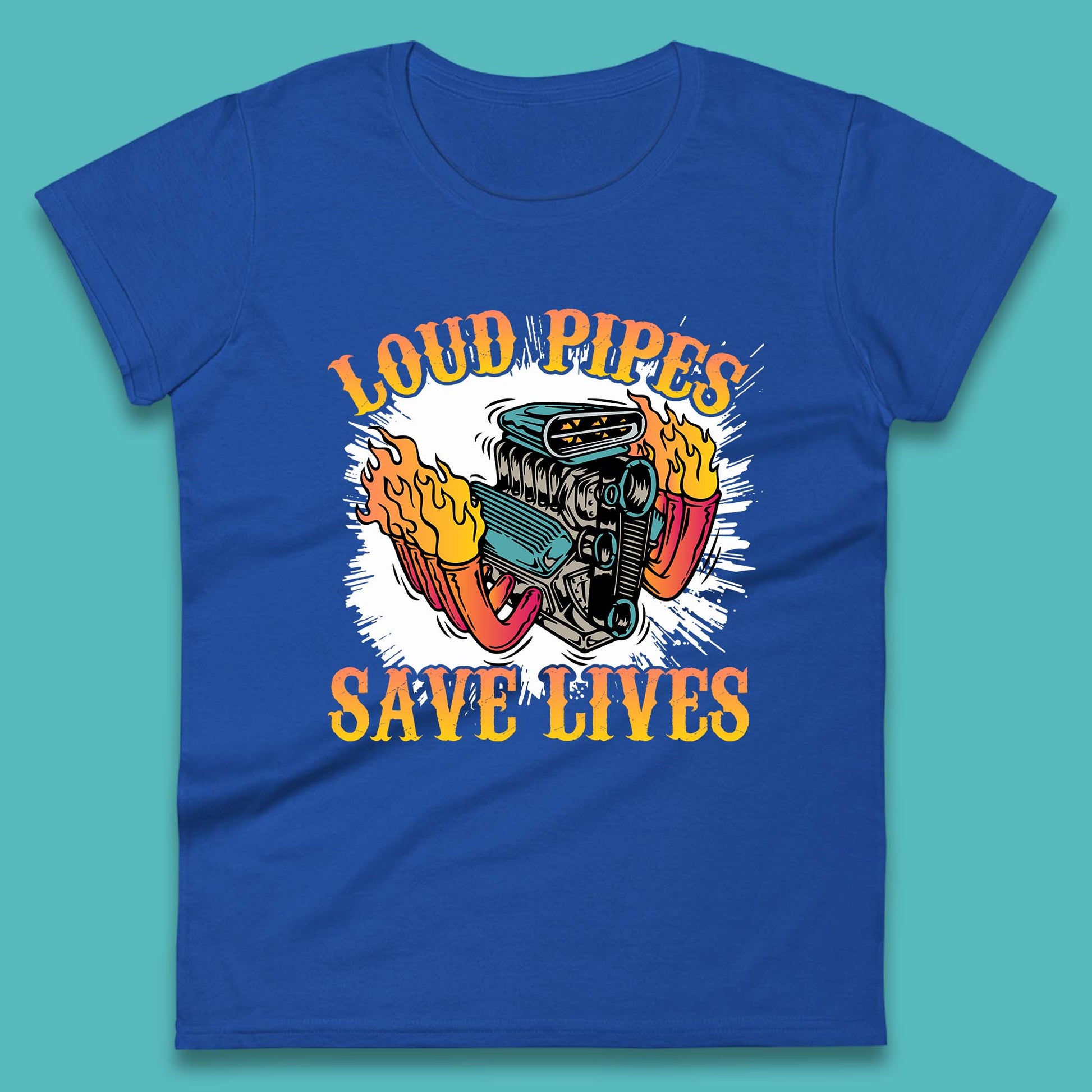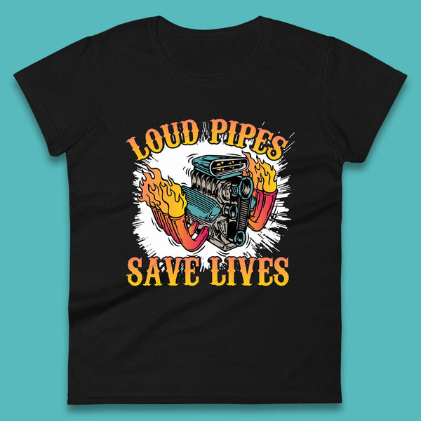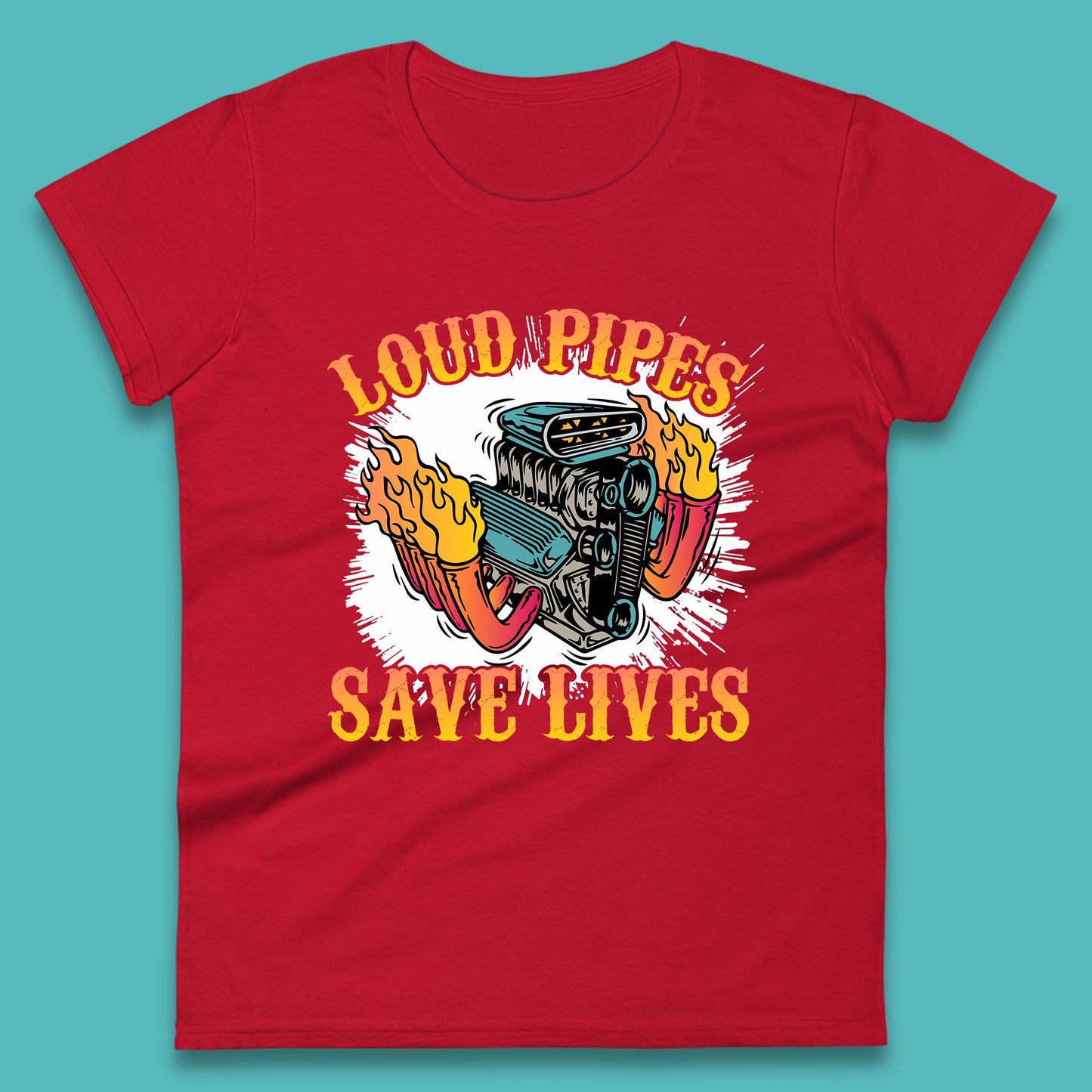 Loud Pipes Save Lives Hot Rod Motor Vehicle Flaming Engine Womens Tee Top