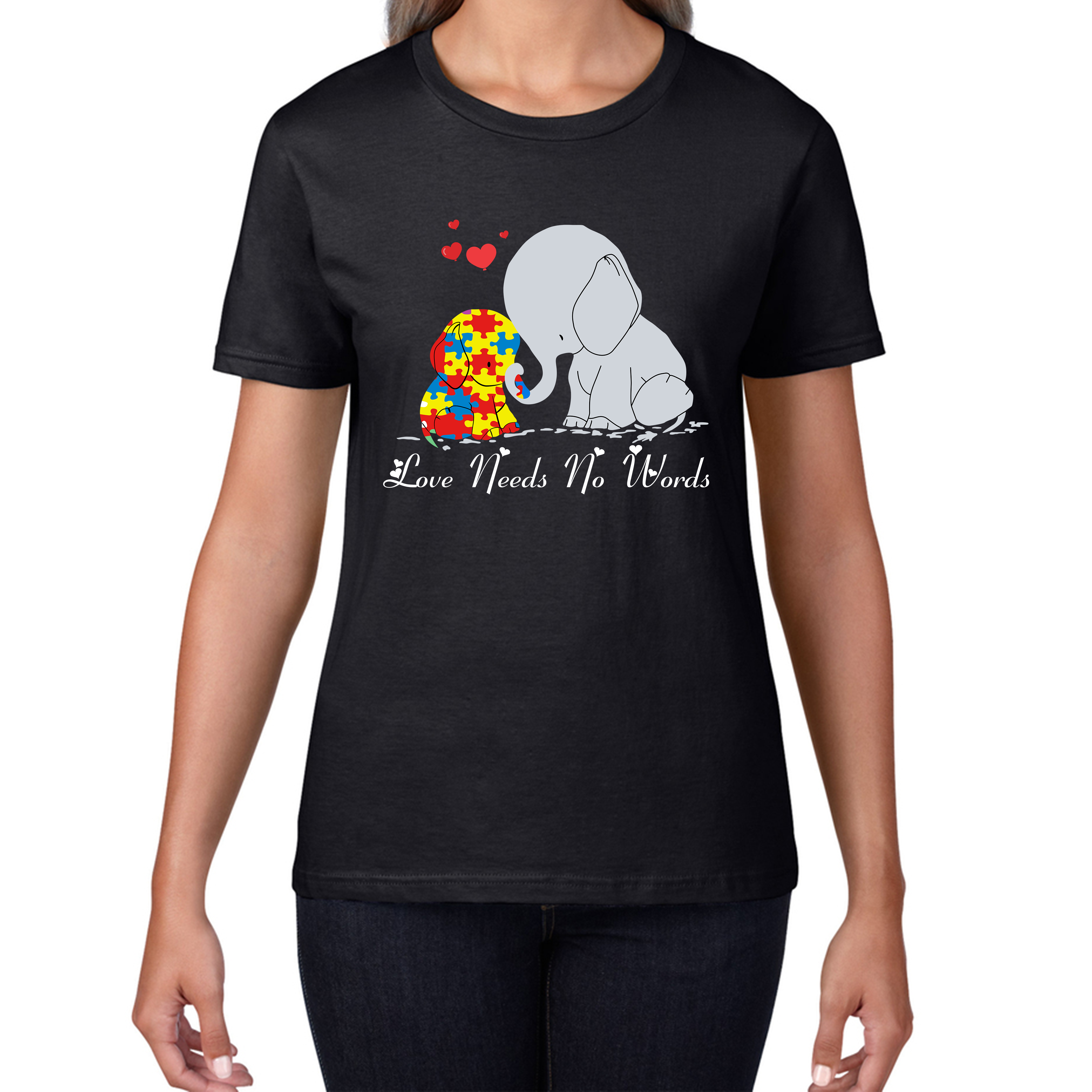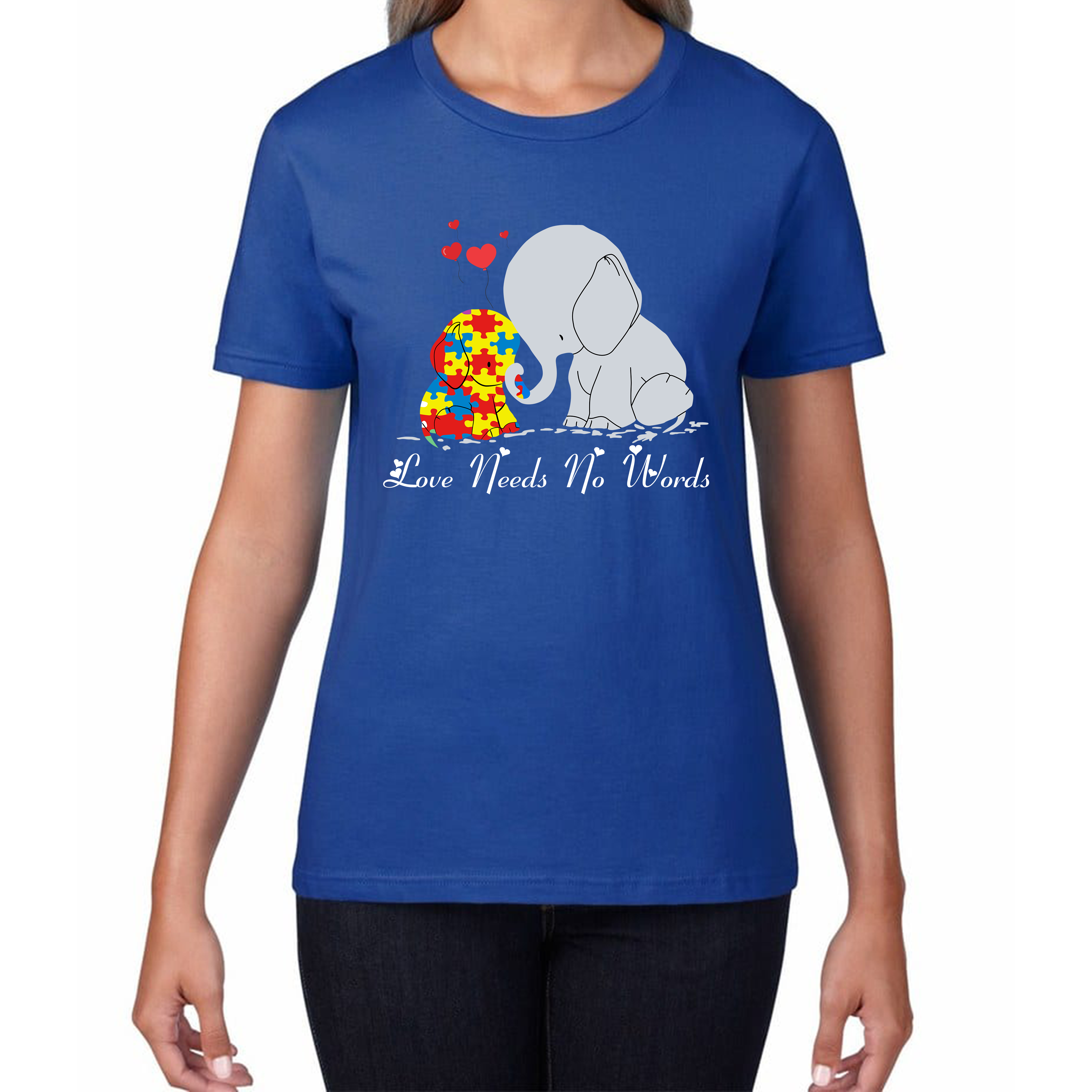 Love Needs No Words Elephant Autism Awareness Ladies T Shirt