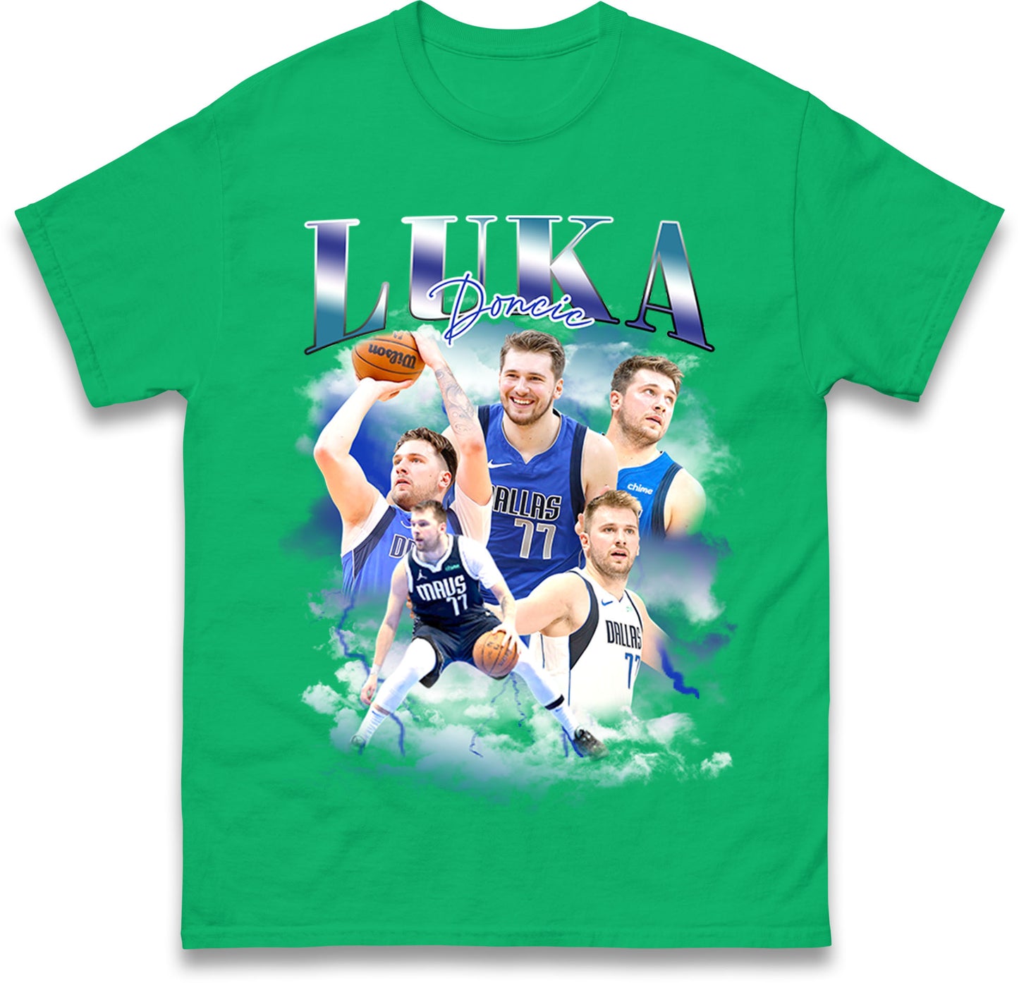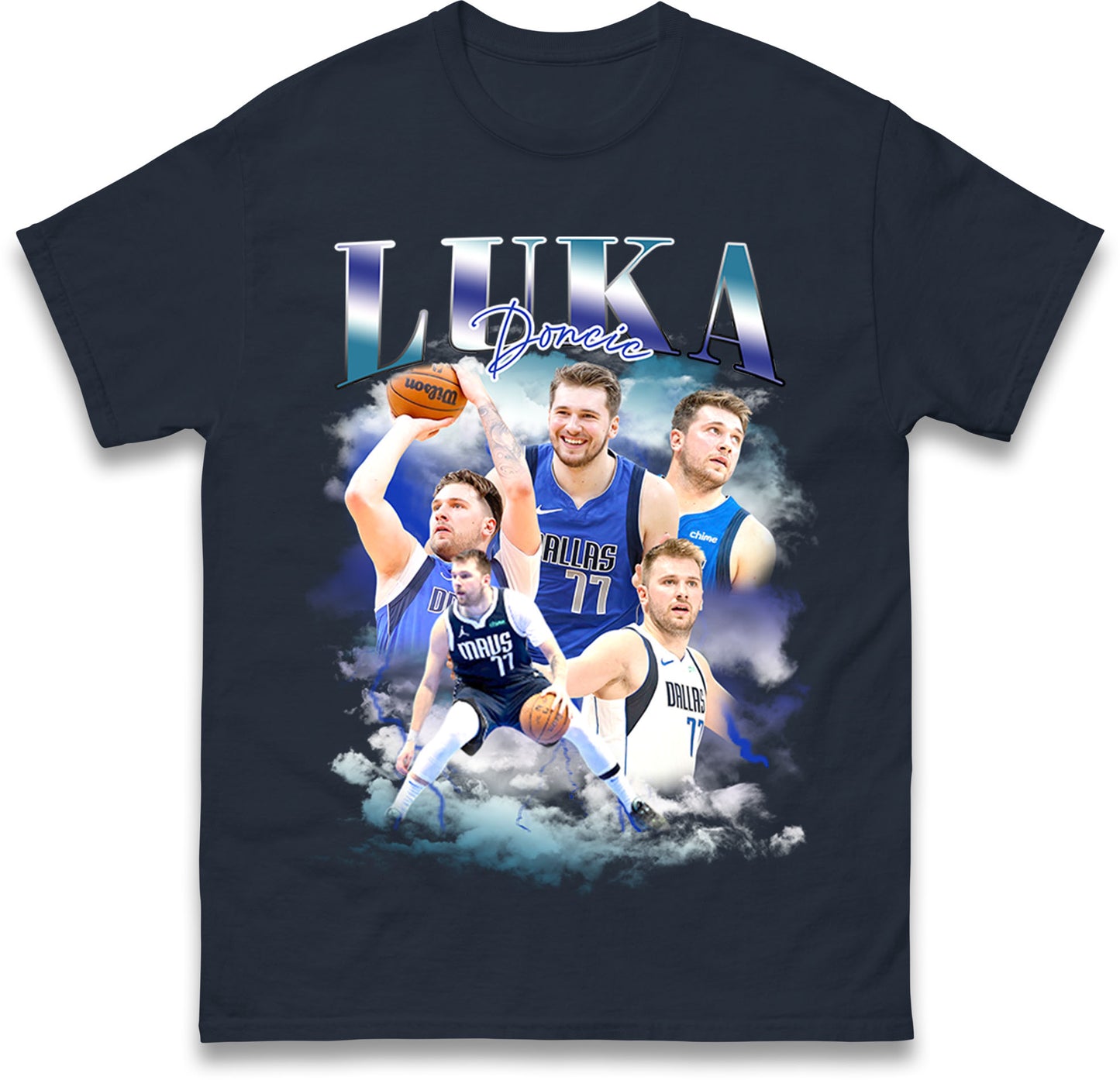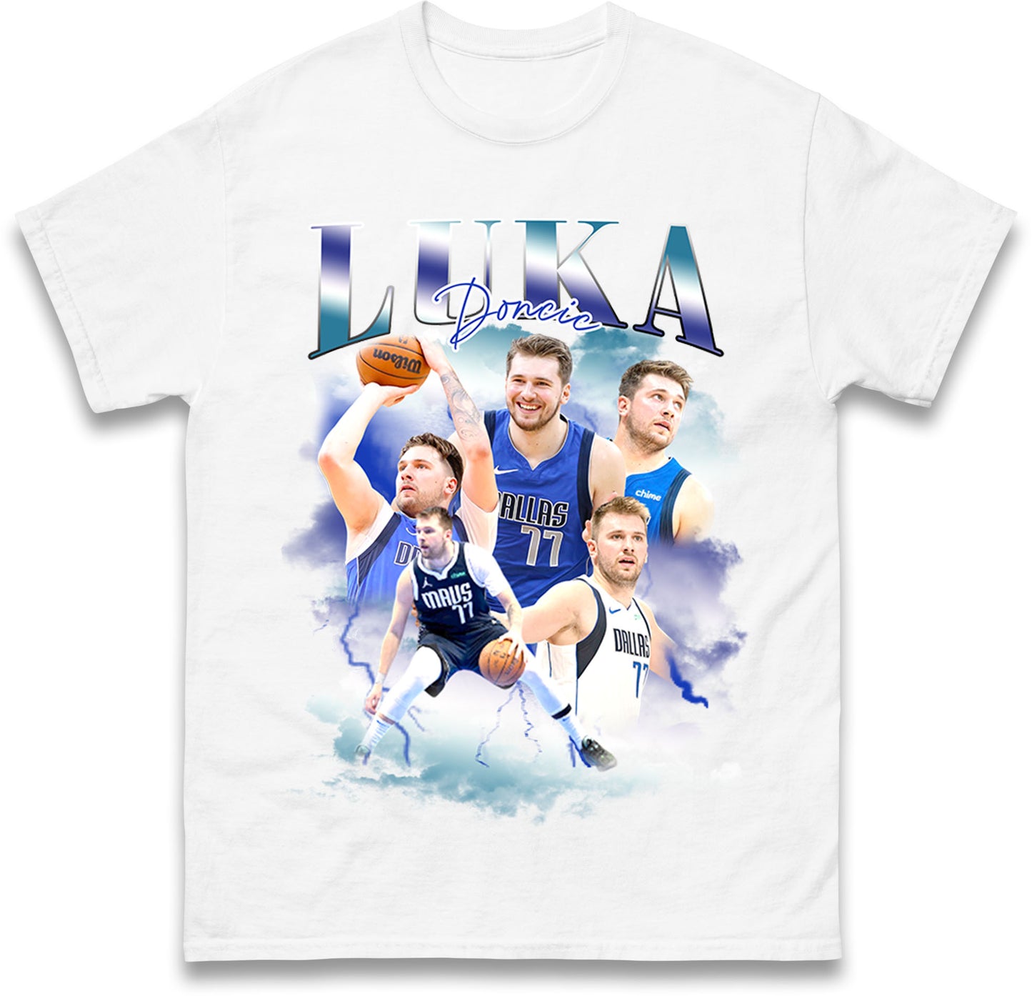 Luka Dončić is a Dallas Mavericks star, not a Los Angeles Lakers player. However, if you're looking for a bootleg-style T-shirt with a Lakers-inspired twist, this design blends retro 90s streetwear vibes with bold basketball graphics. Made from soft, breathable fabric, it's perfect for casual wear, game nights, or showcasing your love for Luka in a unique way. A great pick for NBA fashion fans who appreciate vintage basketball aesthetics. Let me know if you'd prefer a Dallas Mavericks version instead!