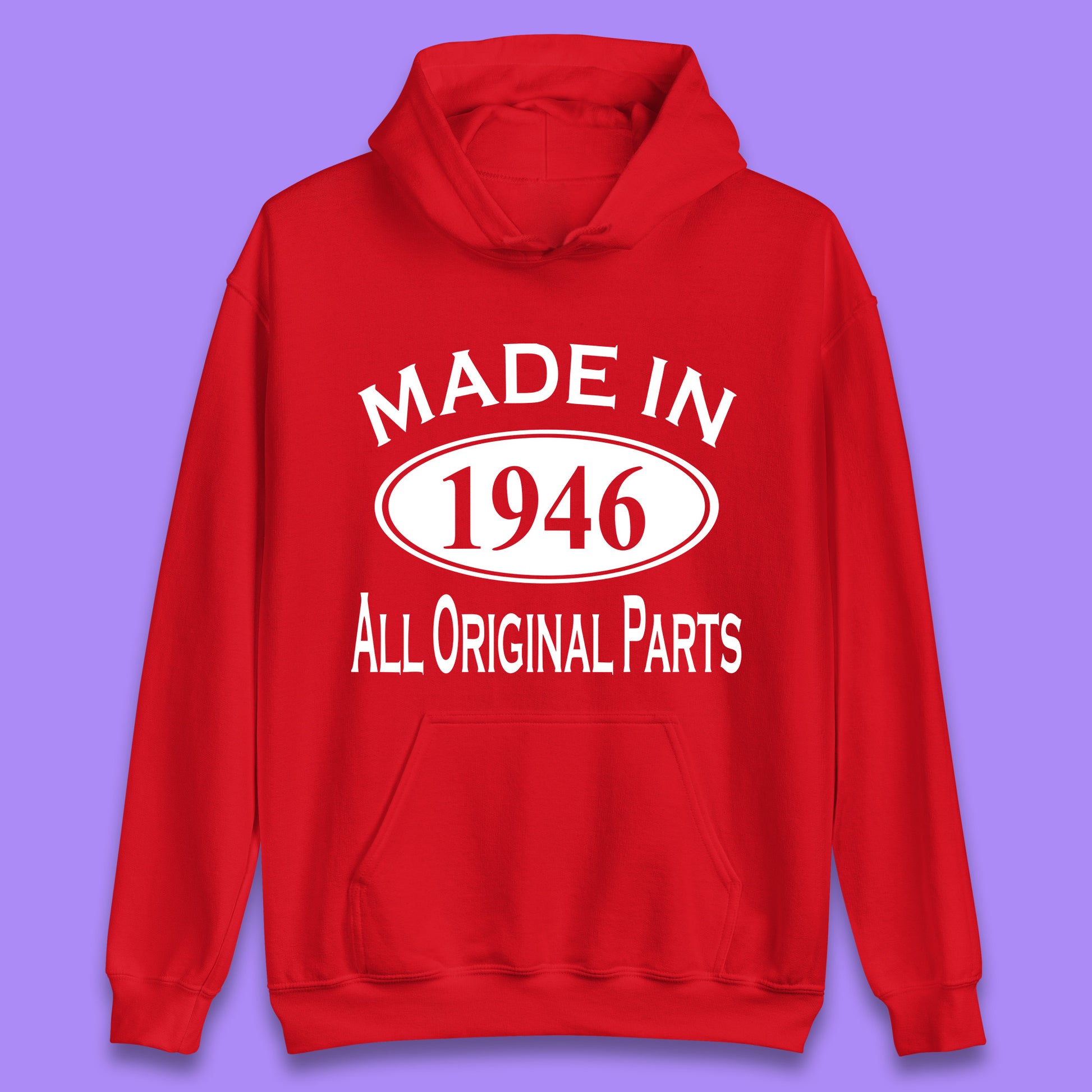 Made In 1946 All Original Parts Vintage Retro 77th Birthday Funny 77 Years Old Birthday Gift Unisex Hoodie