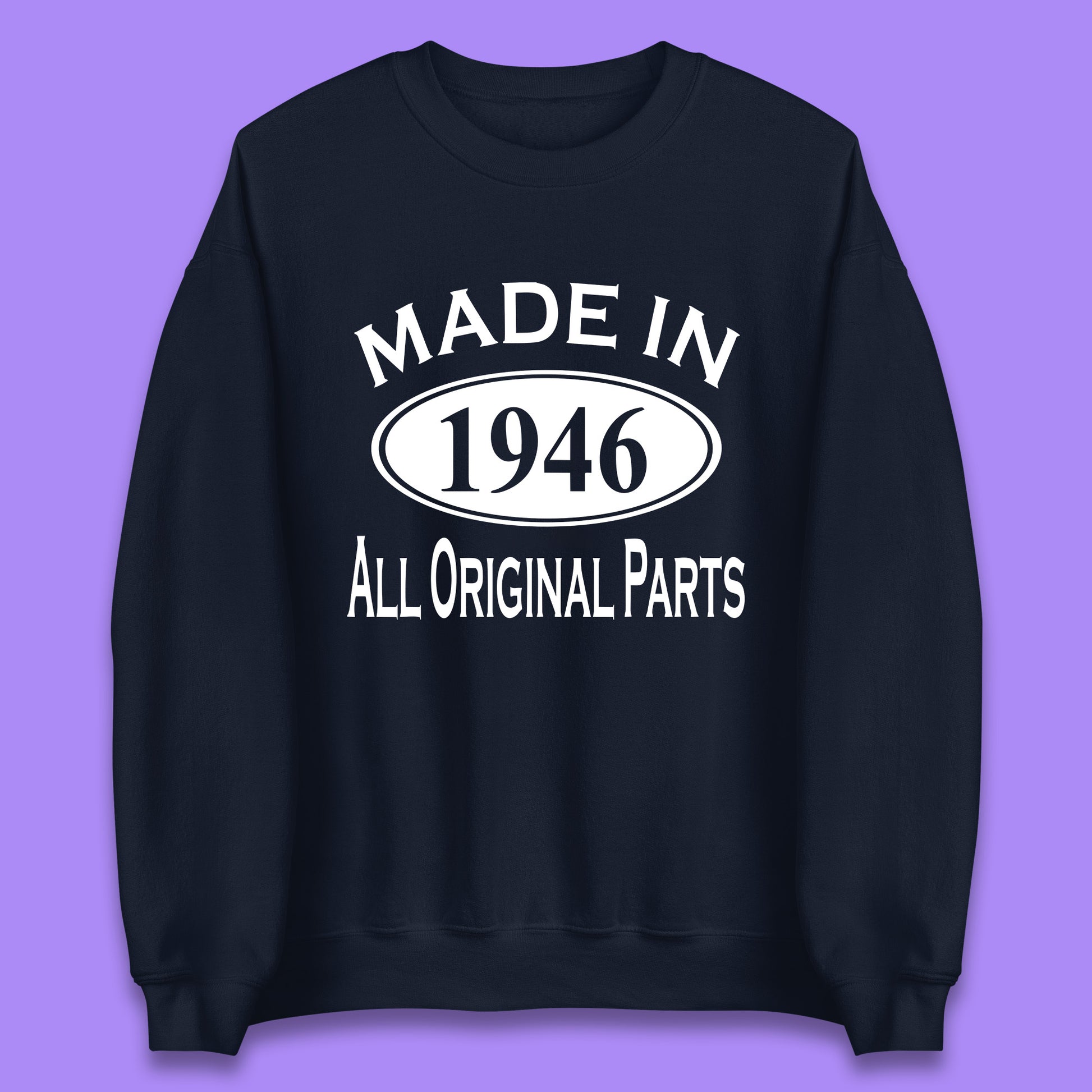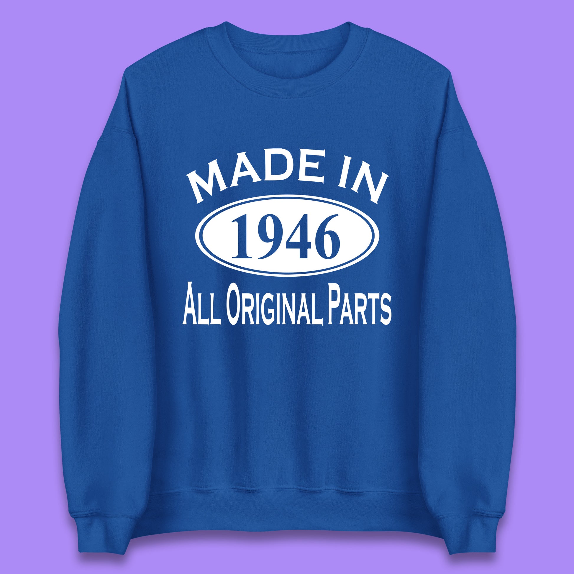 Made In 1946 All Original Parts Vintage Retro 77th Birthday Funny 77 Years Old Birthday Gift Unisex Sweatshirt