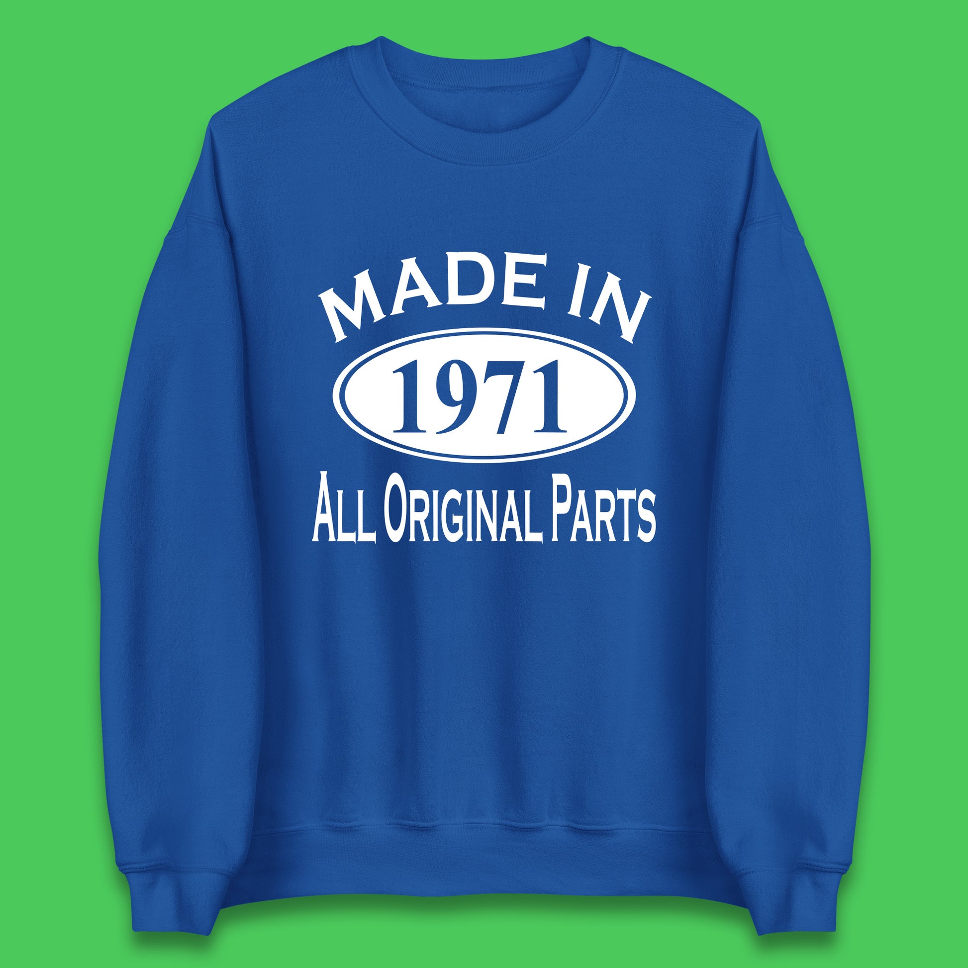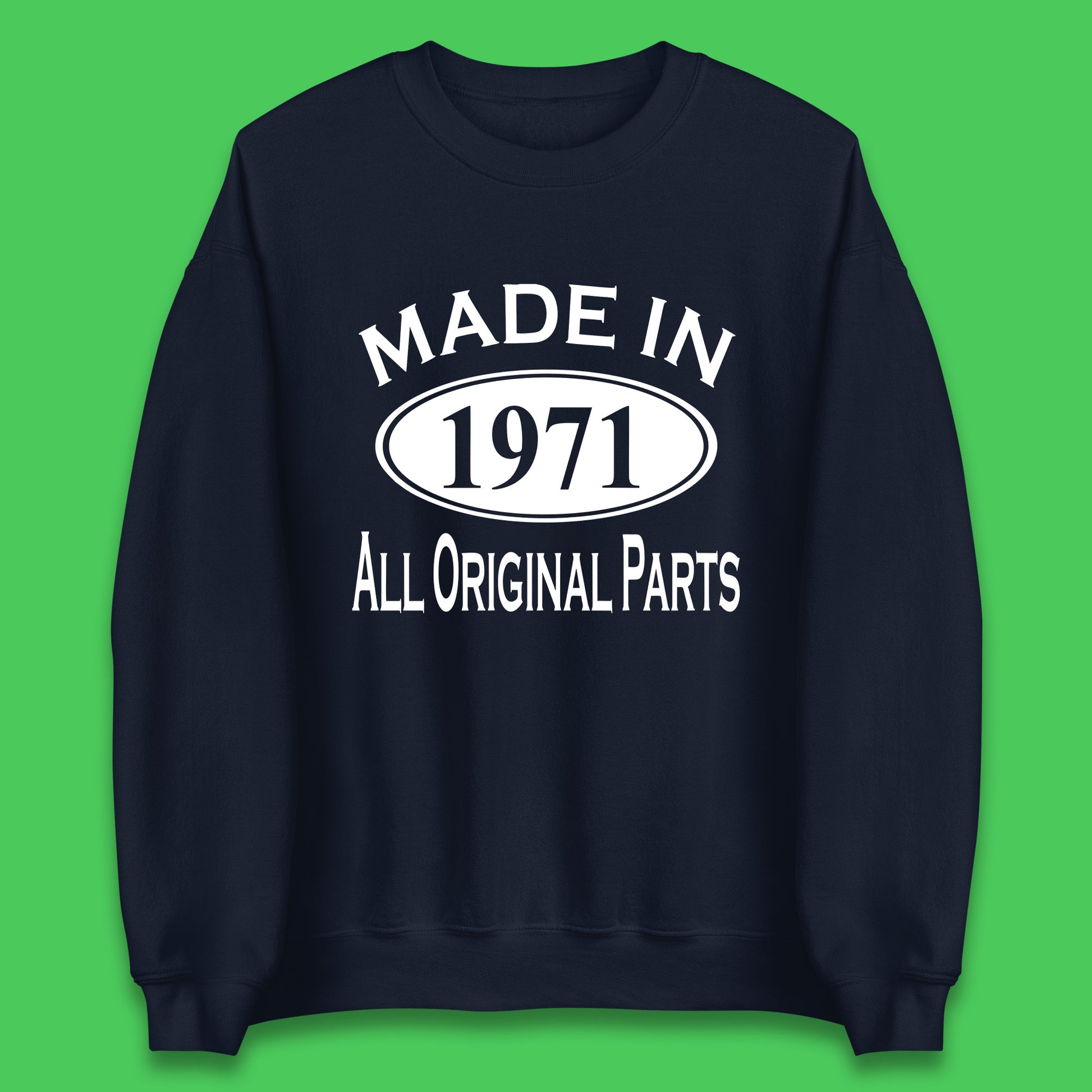 Made In 1971 All Original Parts Vintage Retro 52nd Birthday Funny 52 Years Old Birthday Gift Unisex Sweatshirt