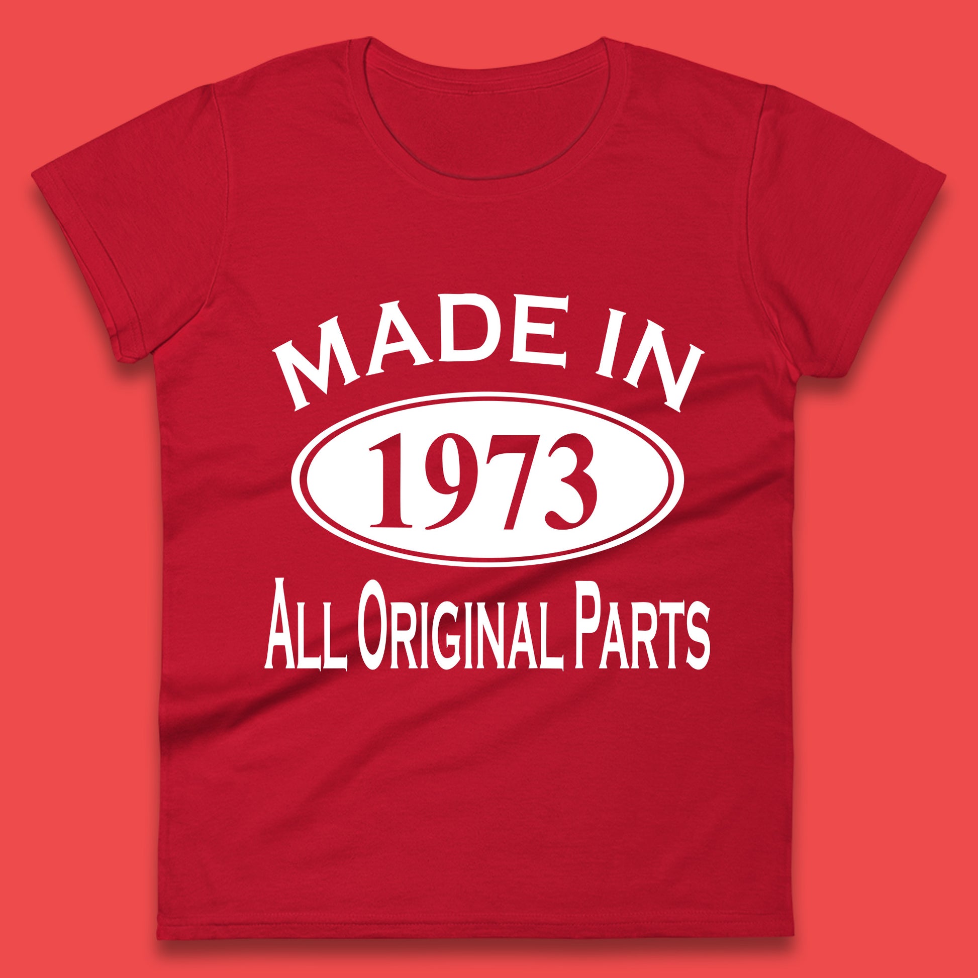 Made In 1973 All Original Parts Vintage Retro 50th Birthday Funny 50 Years Old Birthday Gift Womens Tee Top