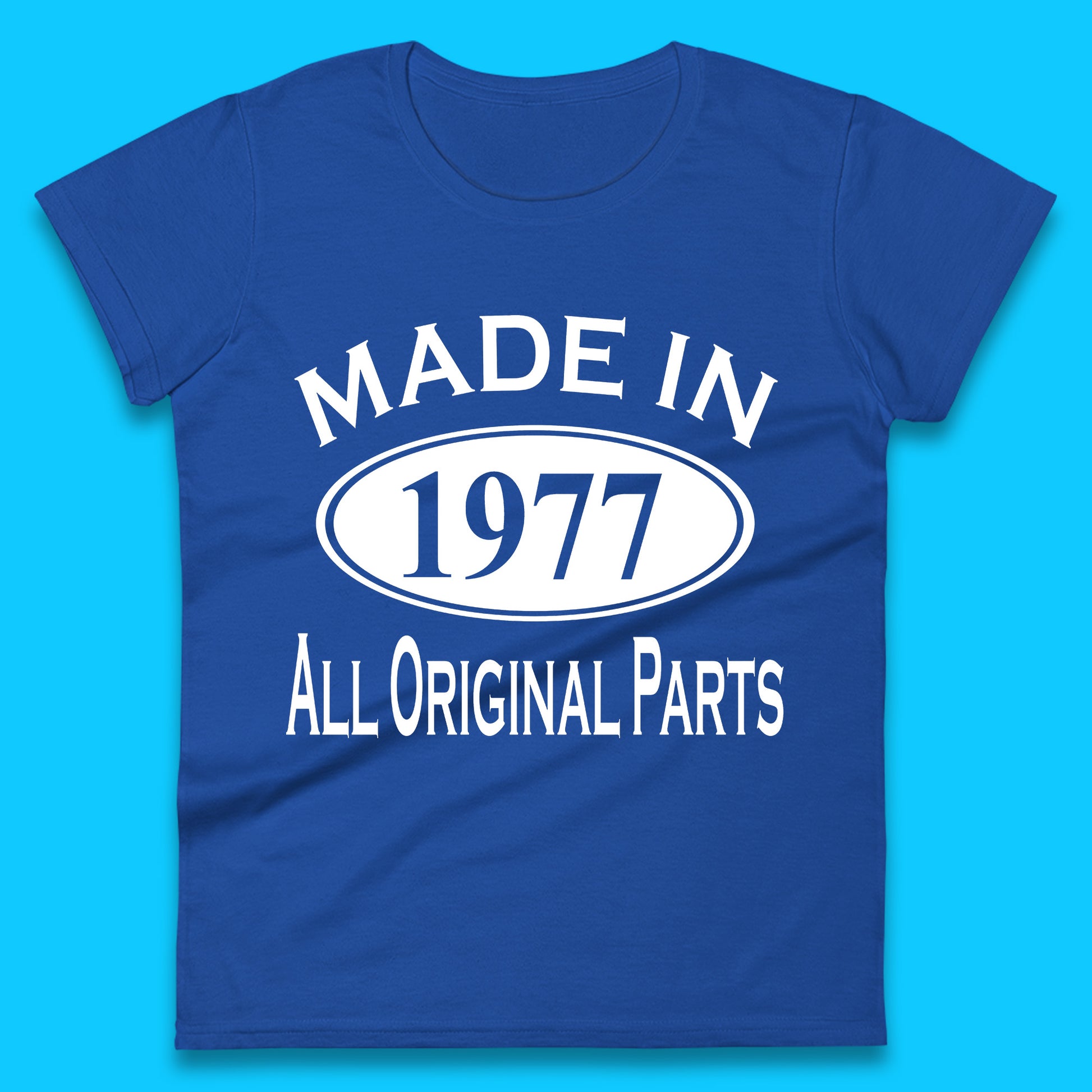 Made In 1977 All Original Parts Vintage Retro 46th Birthday Funny 46 Years Old Birthday Gift Womens Tee Top