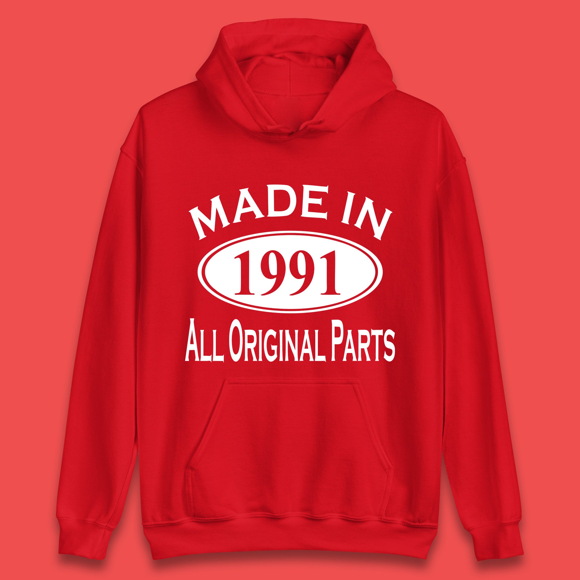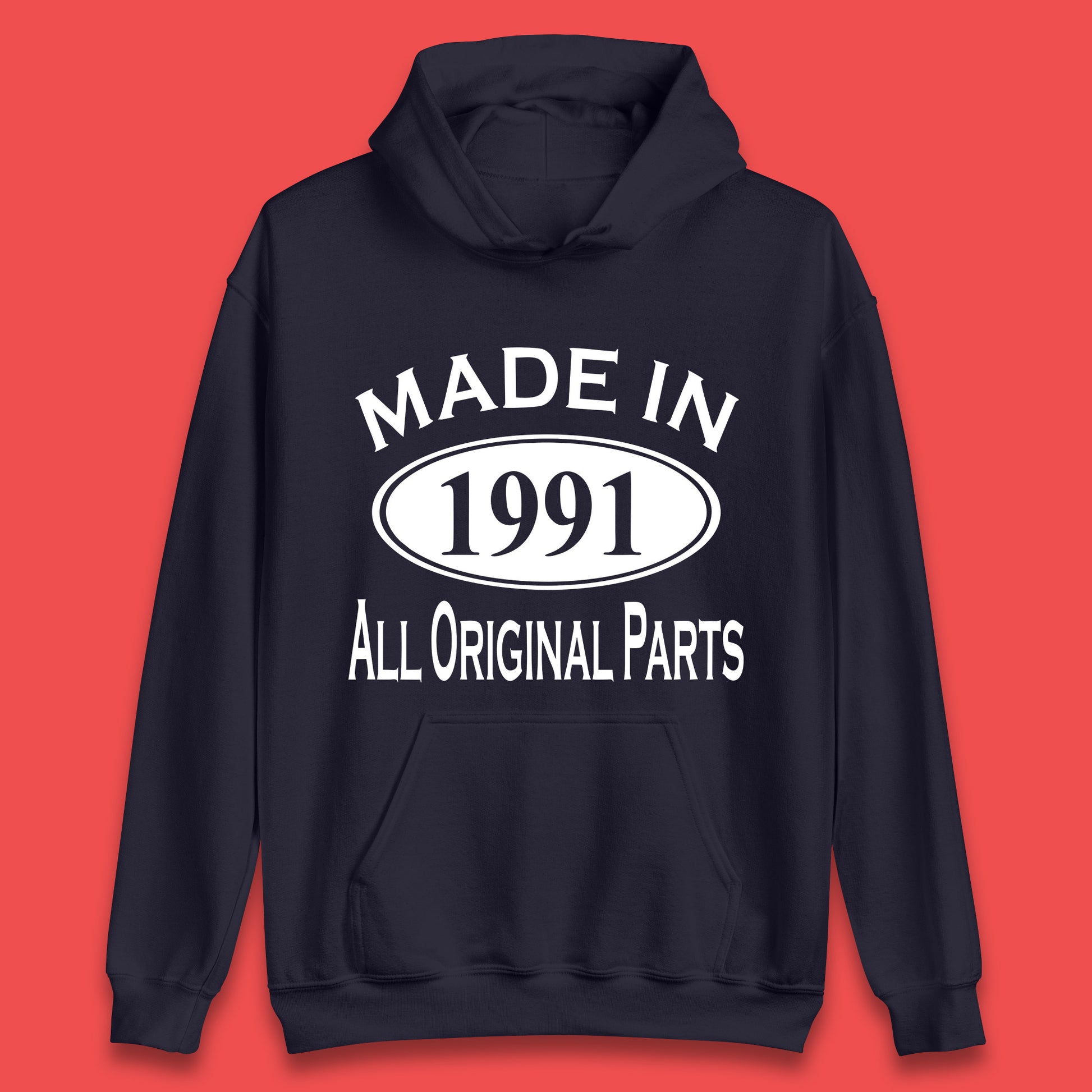 Made In 1991 All Original Parts Vintage Retro 32nd Birthday Funny 32 Years Old Birthday Gift Unisex Hoodie