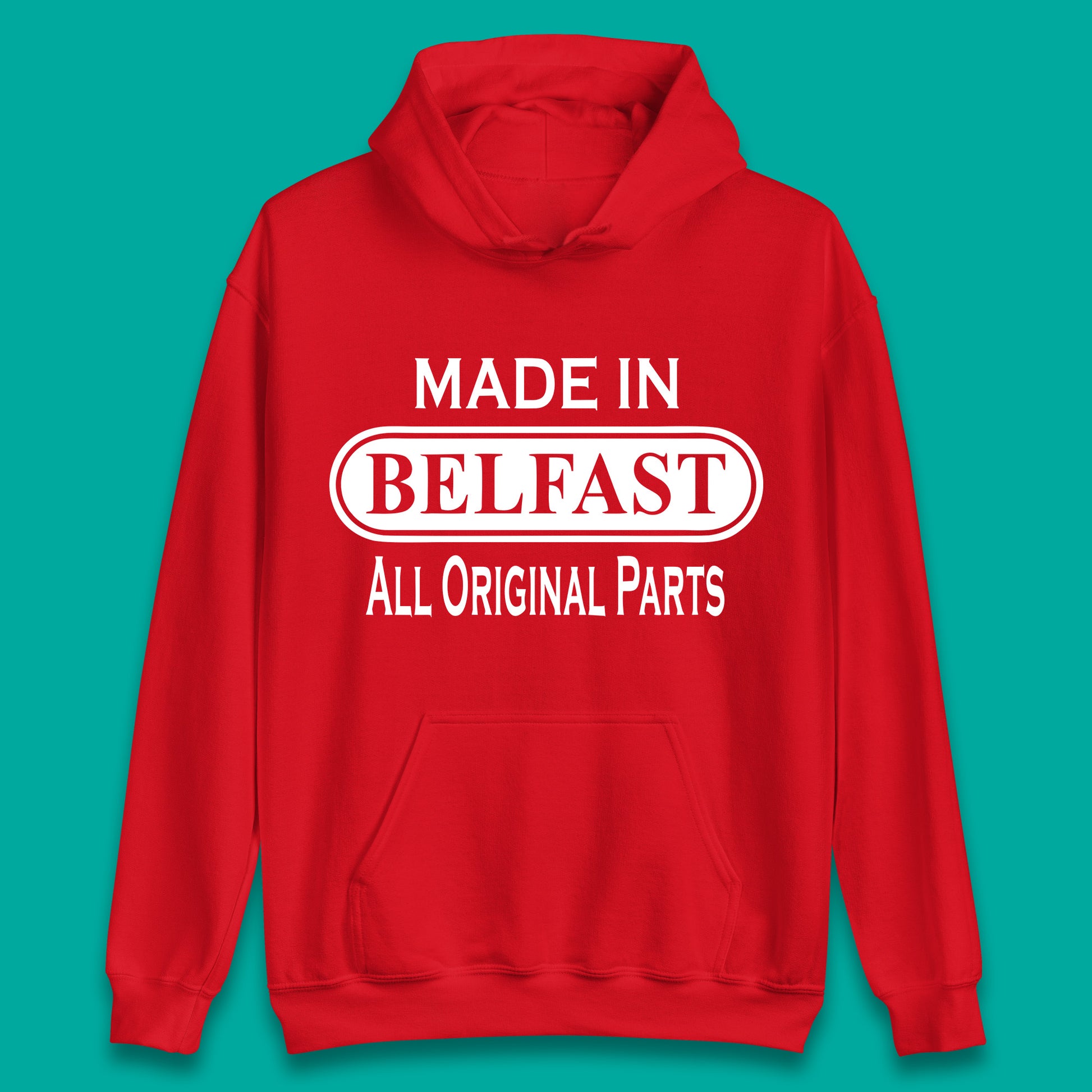 Made In Belfast All Original Parts Vintage Retro Birthday Capital And Largest City Of Northern Ireland Unisex Hoodie
