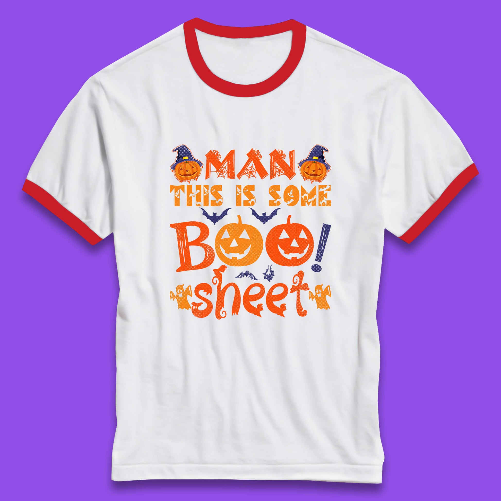Man This Is Some Boo Sheet Funny Ghost Halloween Costume Ringer T Shirt