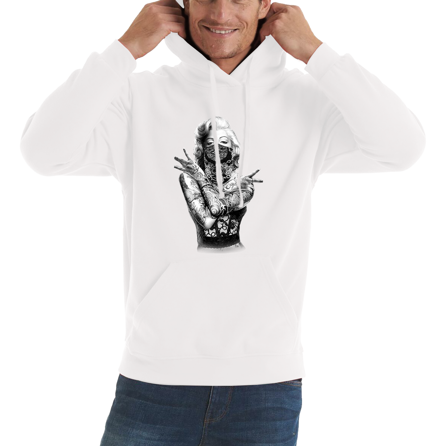 Unleash a blend of classic glamour and edgy style with the Marilyn Monroe Art Tattoo Gangster Unisex Hoodie. Featuring a striking fusion of Marilyn Monroe’s timeless beauty with a bold tattoo and gangster-inspired design, this hoodie is perfect for those who appreciate iconic art with a modern twist.
