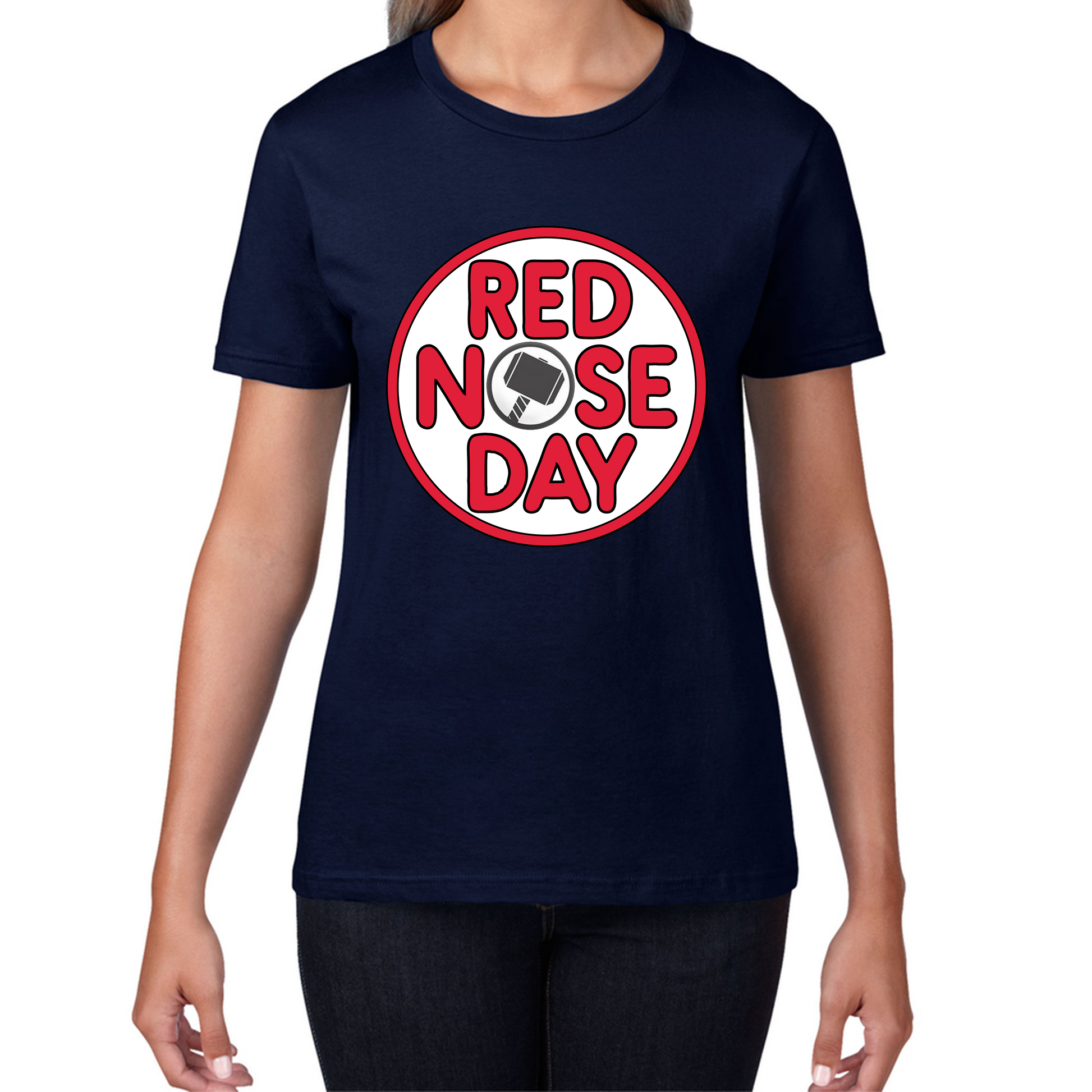 Thor Hammer Red Nose Day Ladies T Shirt