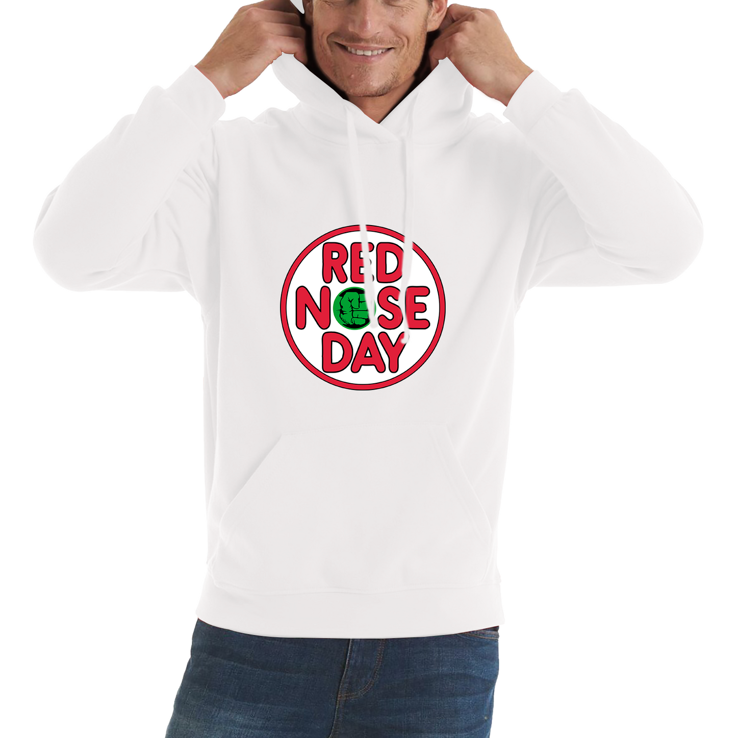 Channel your inner superhero and support a fantastic cause with the Hulk Hand Red Nose Day Unisex Hoodie. This eye-catching hoodie features a bold graphic of the Hulk’s hand, perfectly paired with a red nose to celebrate Red Nose Day. It’s a fun, comfortable, and impactful way to show your support.