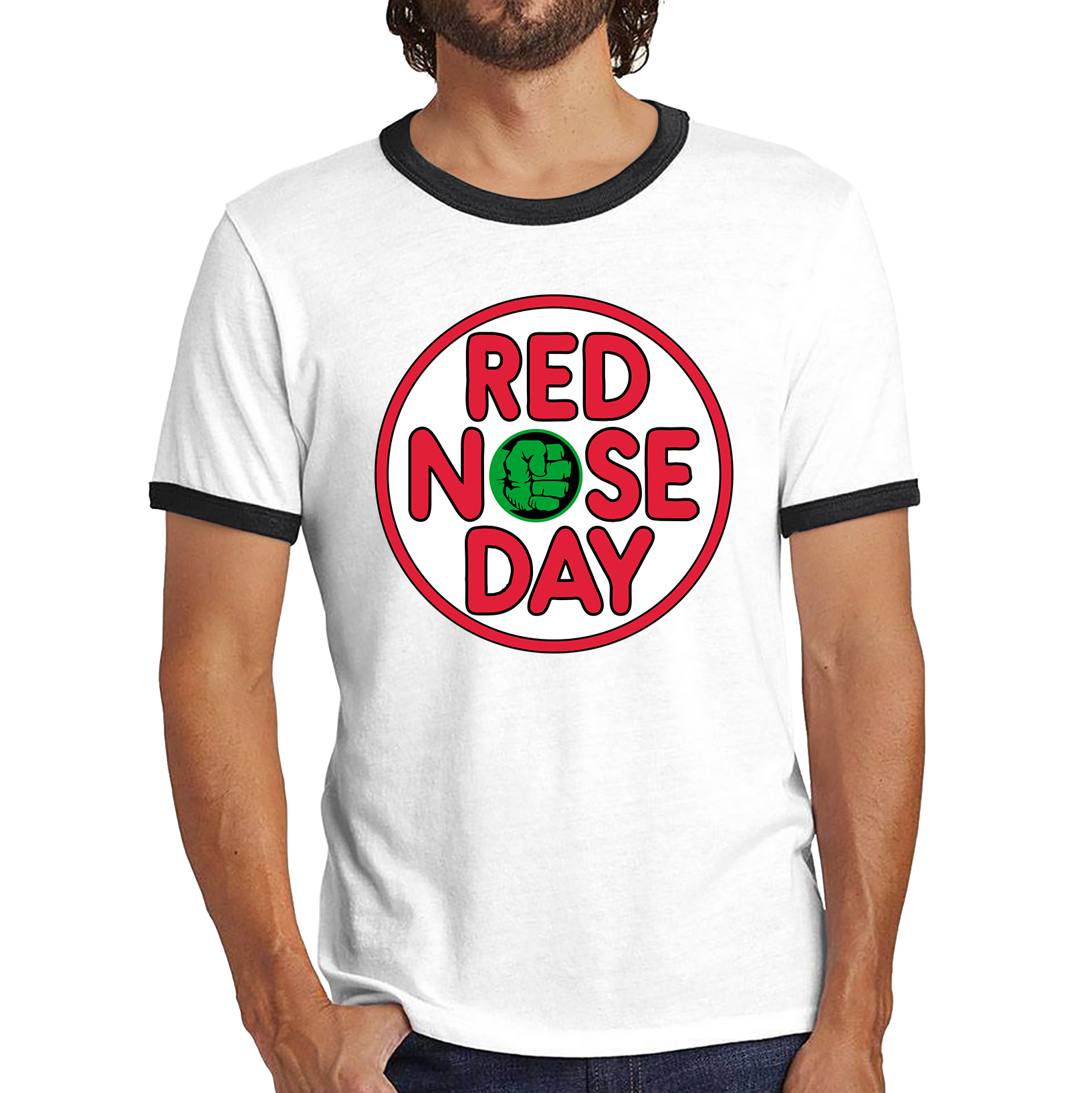 Marvel Avengers Hulk Hand Red Nose Day Ringer T Shirt. 50% Goes To Charity