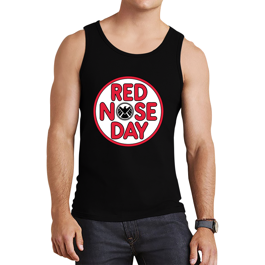 Embrace the combination of Marvel excitement and charitable spirit with the Marvel Shield Red Nose Day tank top. This stylish and comfortable tank top merges the iconic Marvel shield design with the playful essence of Red Nose Day, making it a standout choice for fans who want to stay cool and support a great cause.