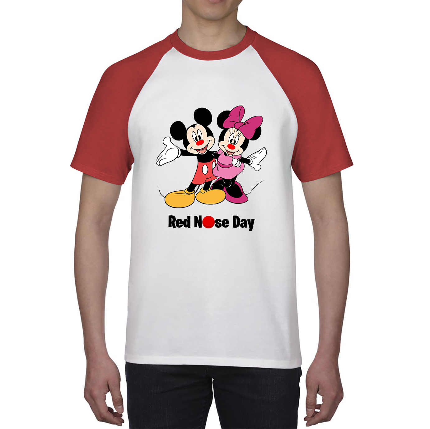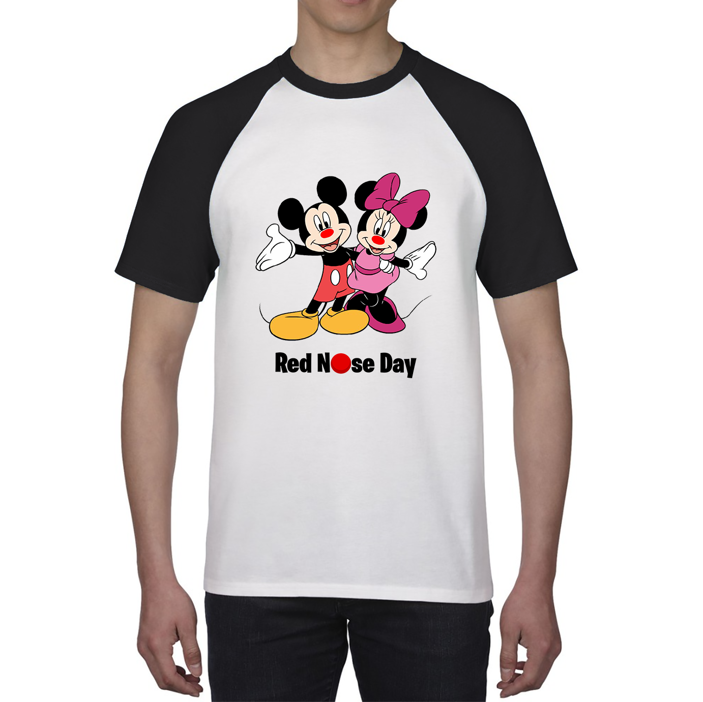 Mickey And Minnie Mouse Red Nose Day Baseball T Shirt. 50% Goes To Charity