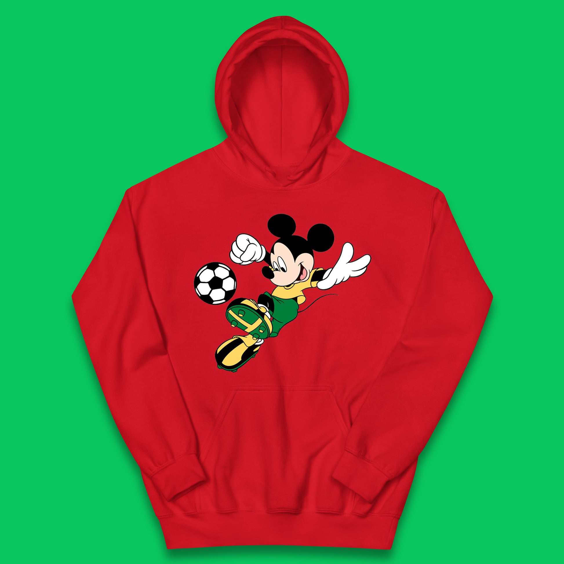 Mickey Mouse Kicking Football Soccer Player Disney Cartoon Mickey Soccer Player Football Team Kids Hoodie
