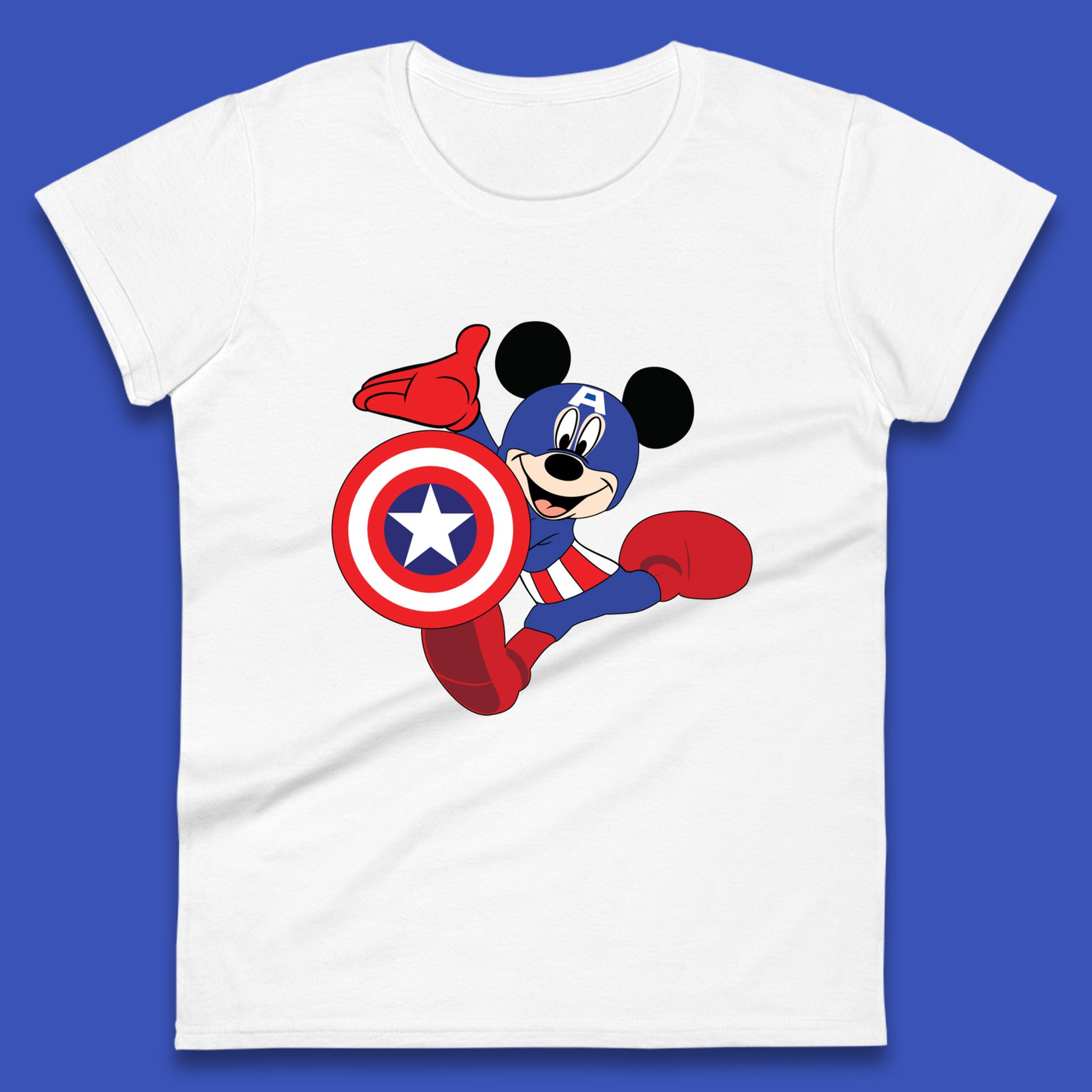 Mickey Mouse Wearing Captain America Costume Disney Marvel Avengers Superhero Disney World Marvel Disney Avengers Campus Womens Tee Top