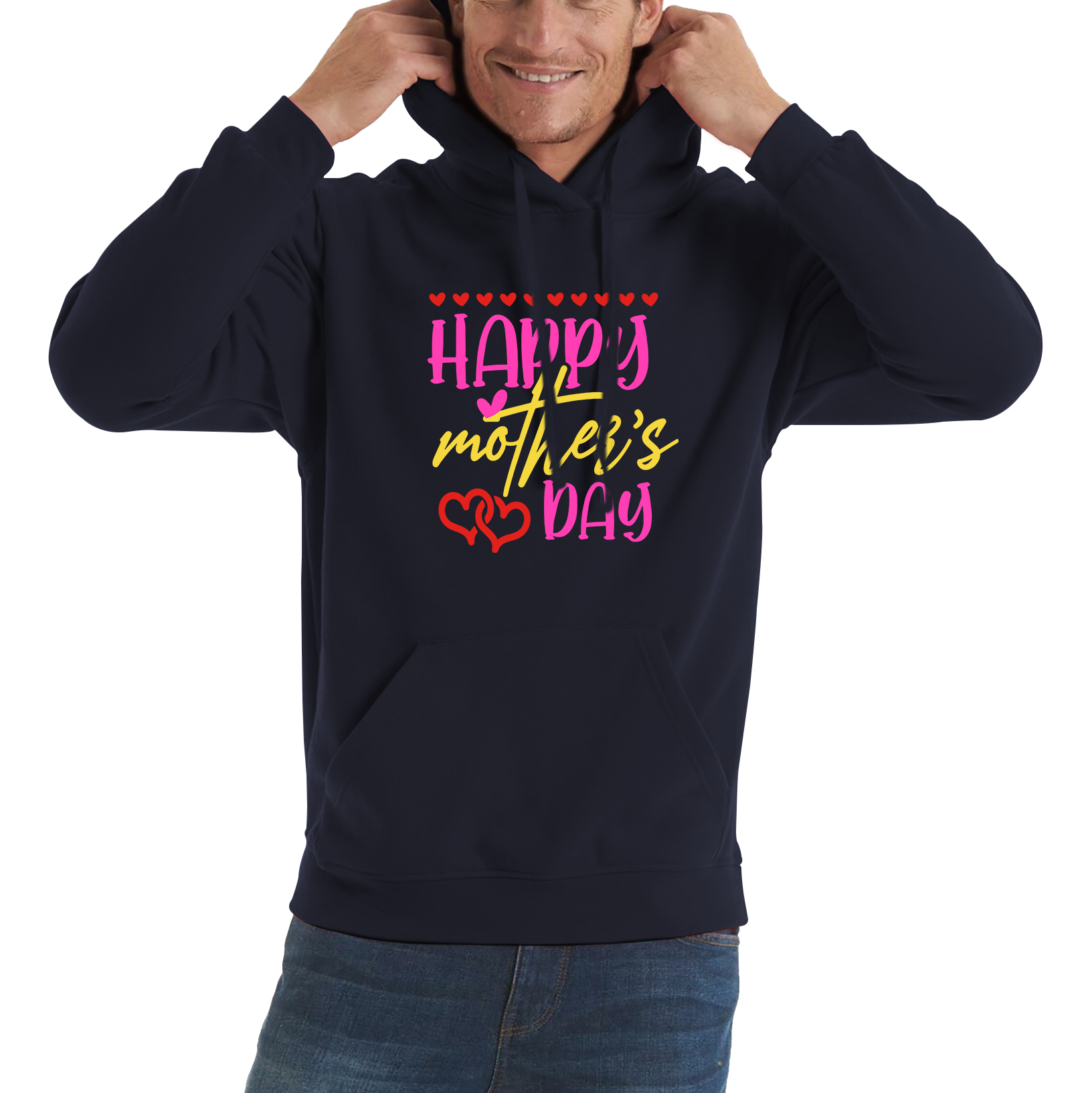 Show your love and appreciation this Mother's Day with our cozy and stylish "Happy Mother's Day" unisex hoodie. Designed for comfort and versatility, this hoodie is perfect for any mom who loves to stay warm and fashionable.