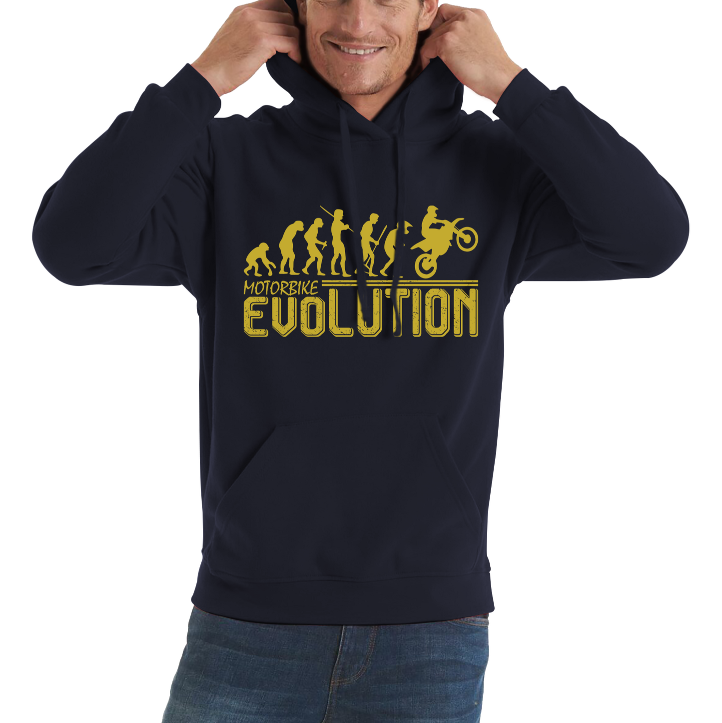 Celebrate your love for motorcycles with a humorous twist in the Motorbike Evolution unisex hoodie. This cozy hoodie features a playful graphic that traces the evolution from primates to modern motorbike riders, perfect for those who appreciate both speed and a good laugh. Made from a soft cotton-polyester blend, it ensures warmth and comfort for casual outings or relaxing at home. With a classic unisex fit, adjustable drawstring hood, and a spacious kangaroo pocket, this hoodie is as practical as it is stylish. Available in a range of sizes, it's a must-have for motorbike enthusiasts who enjoy expressing their passion with humor.