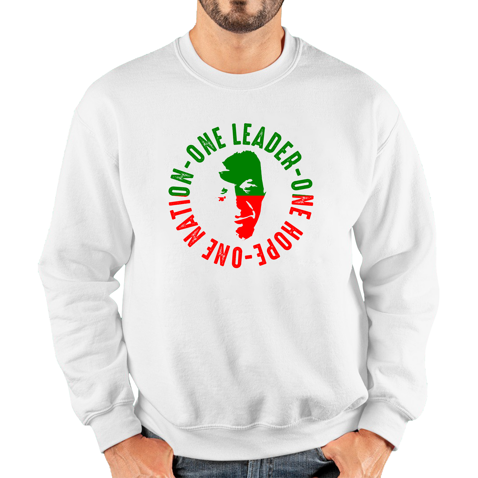 Express your support for visionary leadership with the One Leader One Nation One Hope Mr. Imran Khan Unisex Sweatshirt. This sweatshirt features a powerful design that celebrates Imran Khan's message of unity and hope. With its comfortable and stylish fit, it's ideal for staying cozy while showcasing your commitment to positive change.