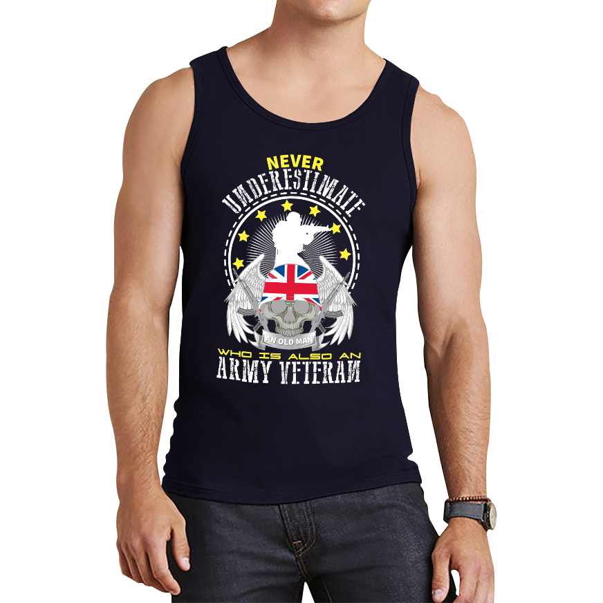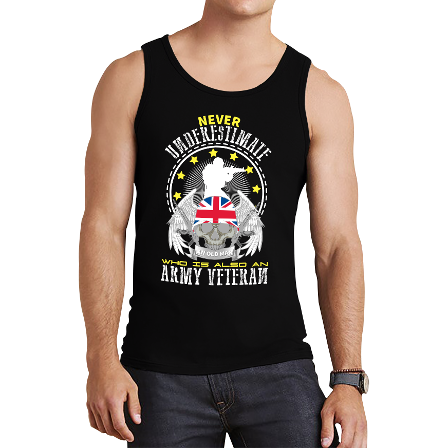Stay cool while showing your respect for veterans with the "Never Underestimate Who Is Also An Army Veteran" Tank Top. This lightweight and stylish tank delivers a powerful message, perfect for warmer days or layering.