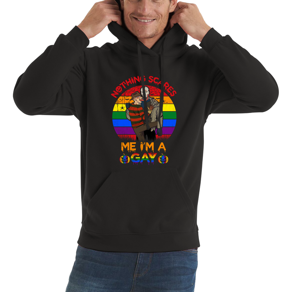 Nothing Scares Me I'm A Gay Pride LGBT Jason Voorhees Freddy Krueger Unisex Hoodie