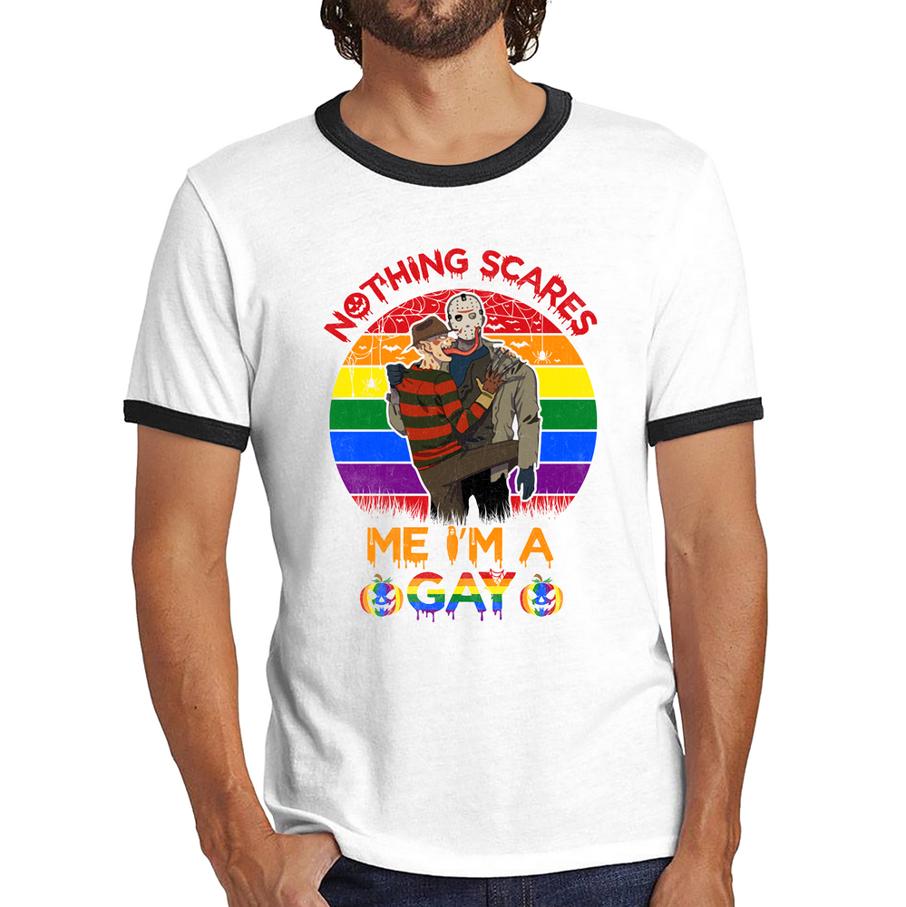 Nothing Scares Me I'm A Gay Pride LGBT Jason Voorhees Freddy Krueger Love Pride Ringer T Shirt