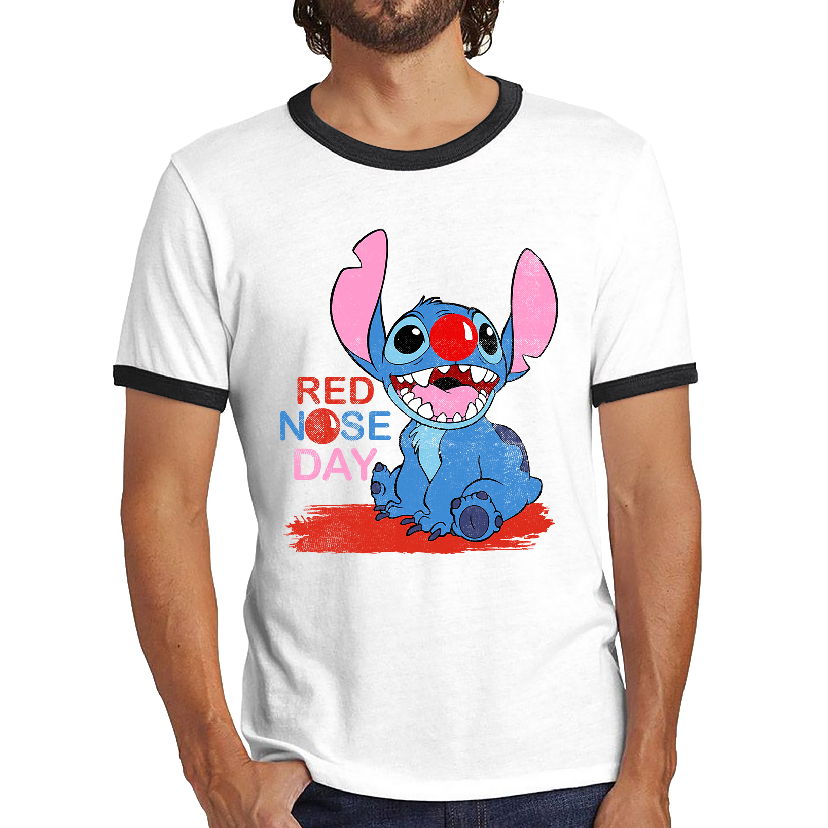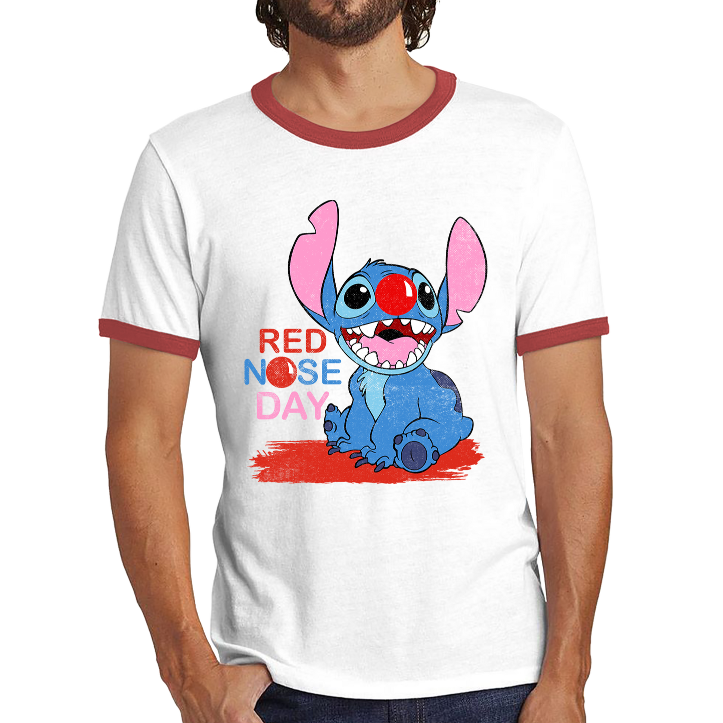 Ohana Disney Stitch Red Nose Day Ringer T Shirt. 50% Goes To Charity