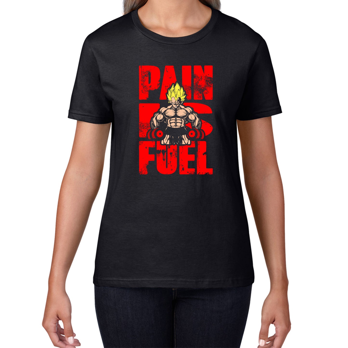 Pain Is Fuel Dragon Ball Z Super Saiyan Goku Kakalot Gym Training Musculation Dumbells Bodybuilding Workout Womens Tee Top