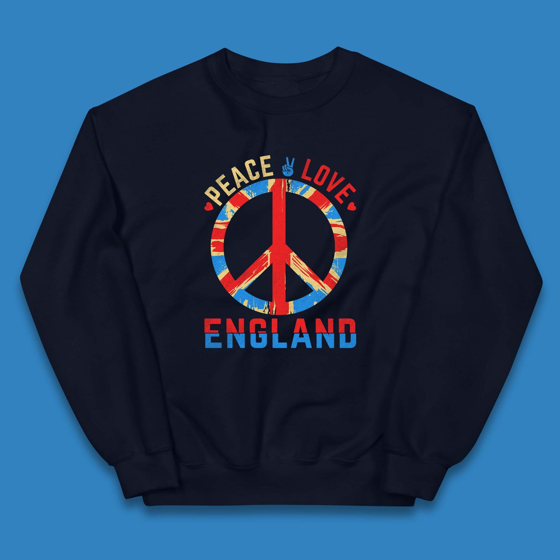 Peace Love England Peace Sign United Kingdom British England Vacation Trip Kids Jumper