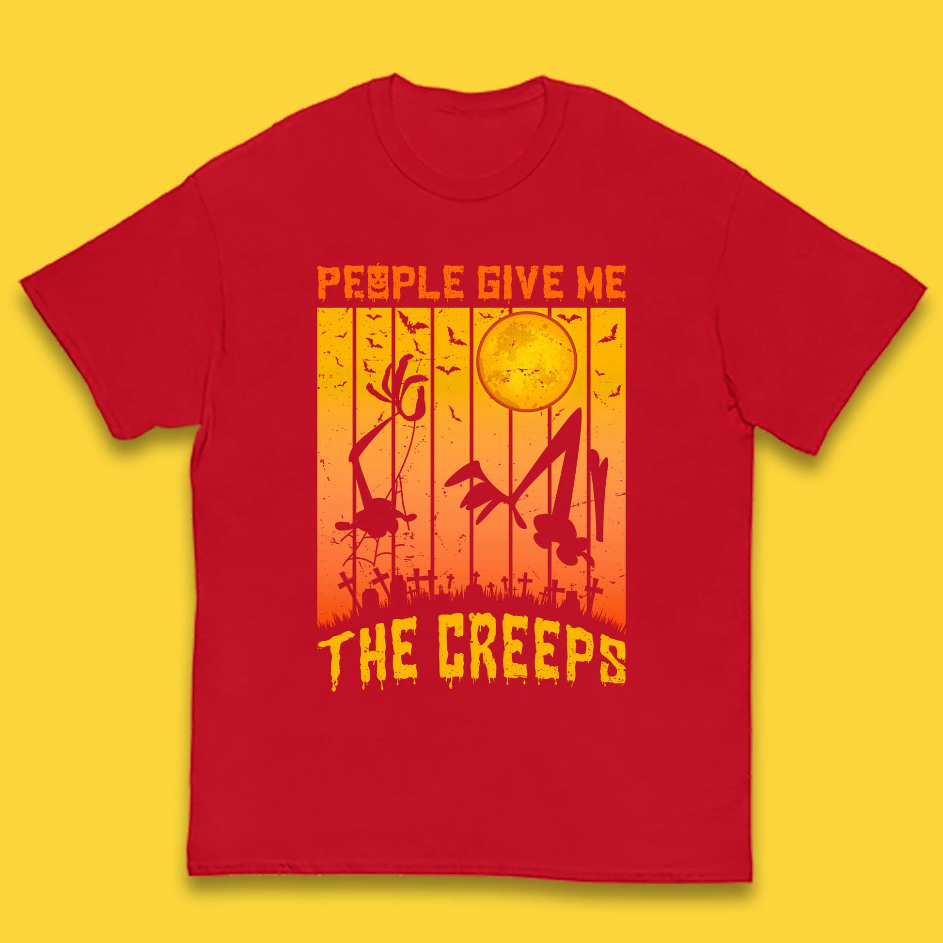 People Give Me The Creep Halloween Horror Scary Graveyards Full moon Flying Bats Kids T Shirt