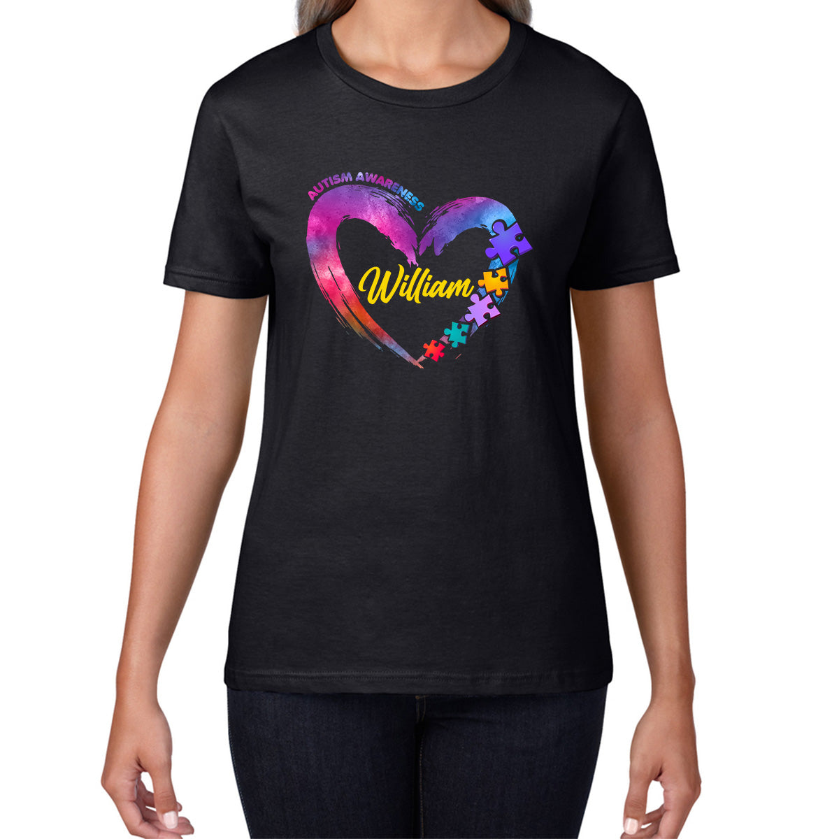Personalised Autism Awareness Puzzle Pieces Your Name Autism Support Autistic Pride Autism Warrior Womens Tee Top
