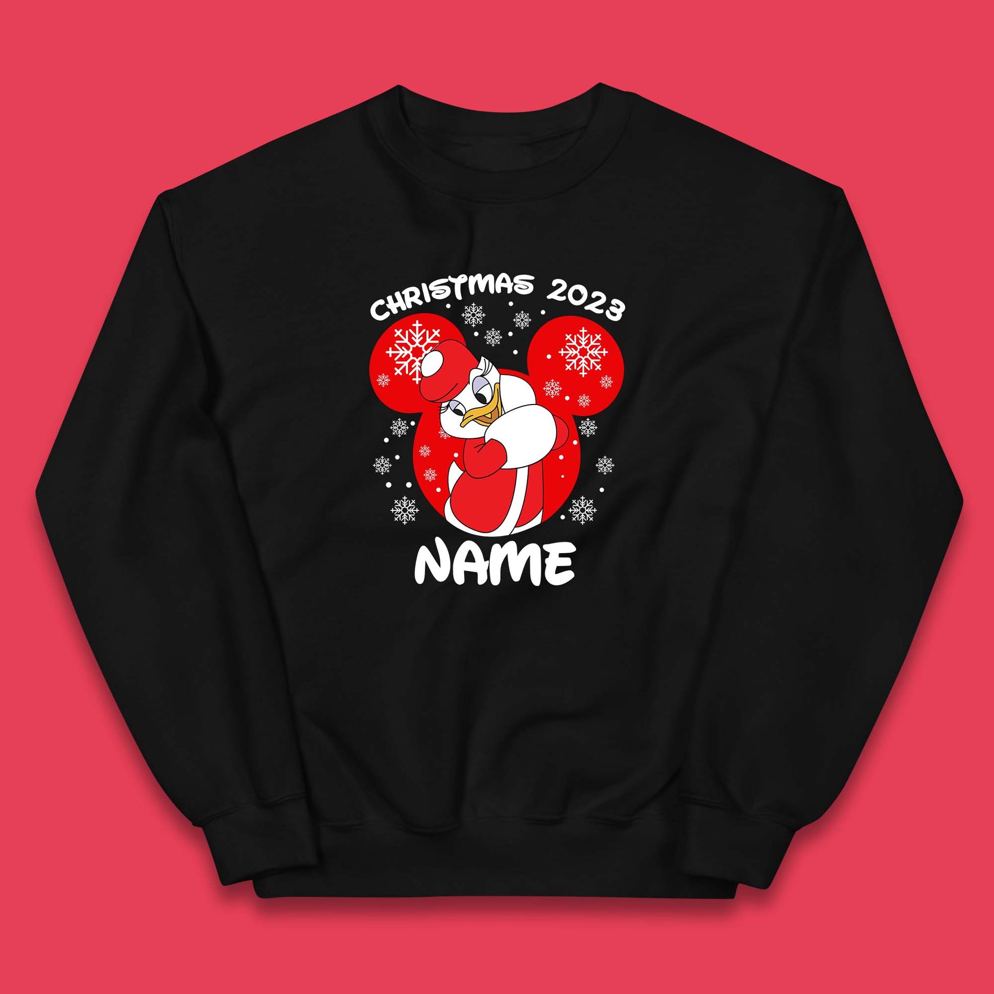 Personalised Christmas 2023 Your Name Santa Donald Duck And Daisy Duck Xmas Disney Mickey And Friends Kids Jumper