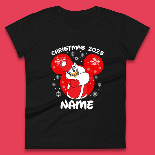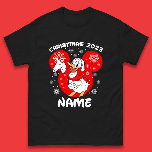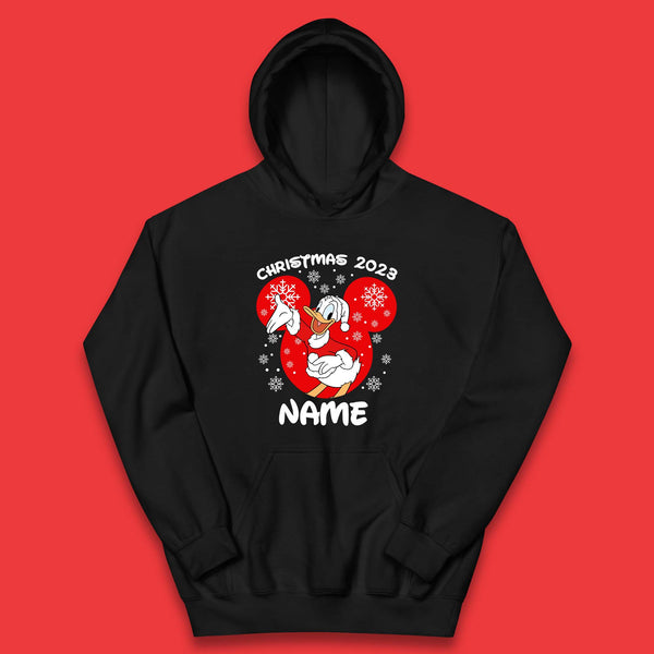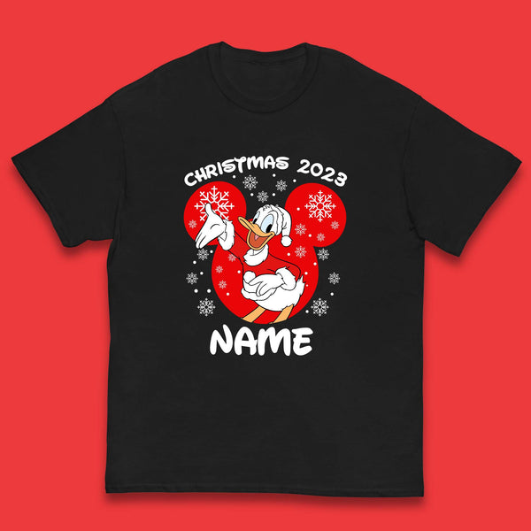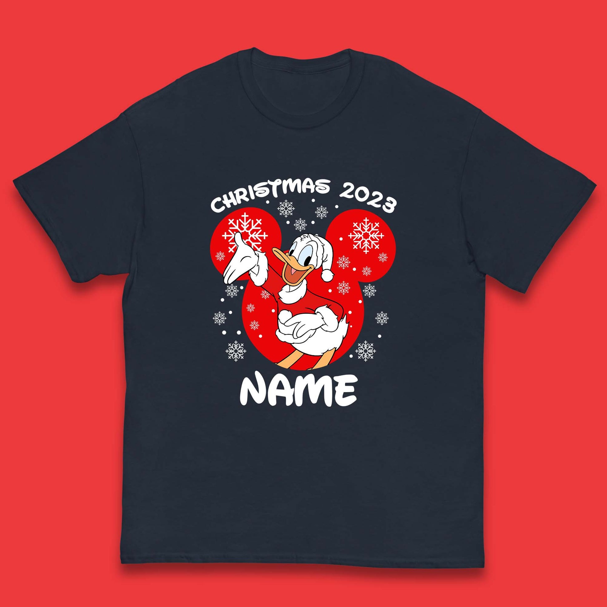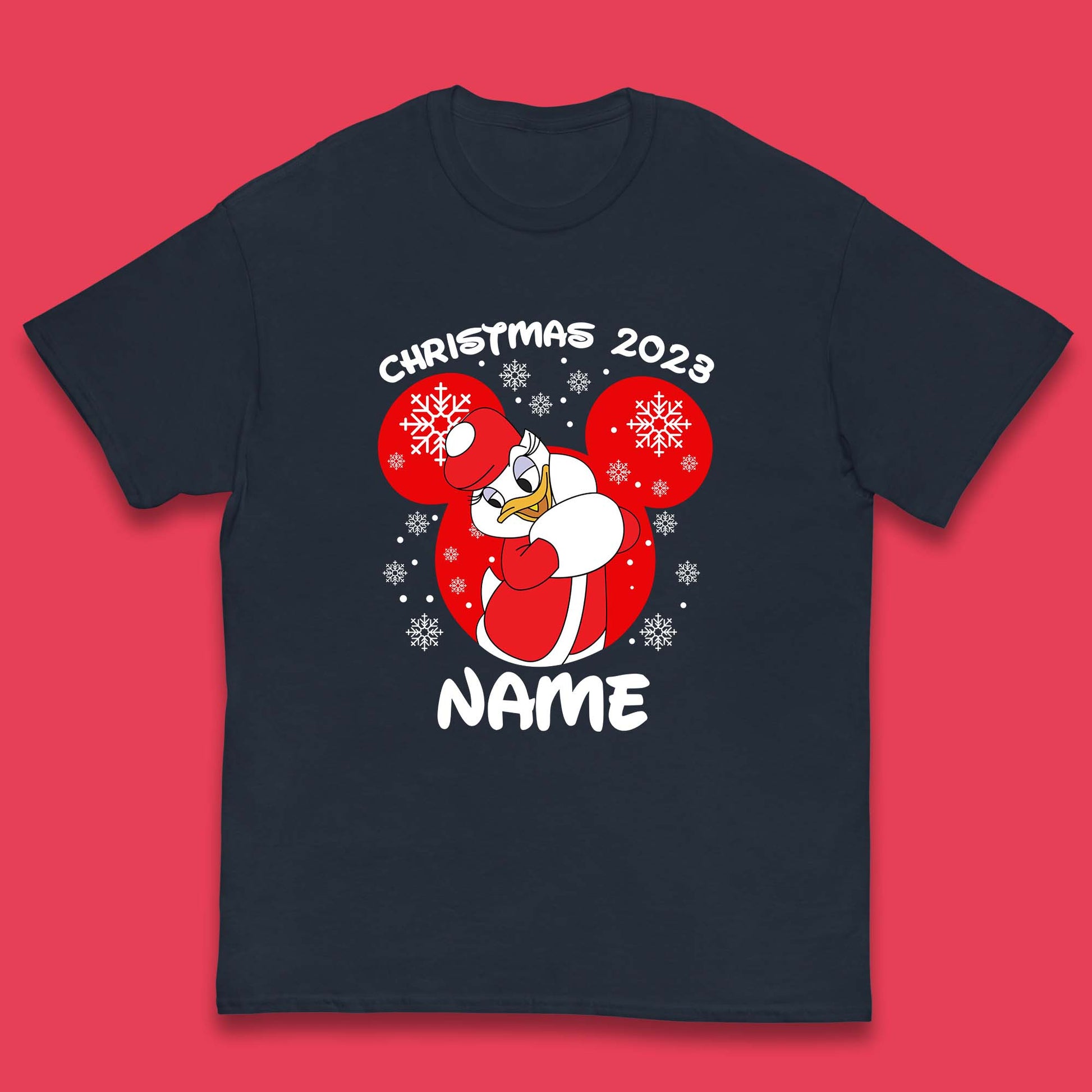 Personalised Christmas 2023 Your Name Santa Donald Duck And Daisy Duck Xmas Disney Mickey And Friends Kids T Shirt